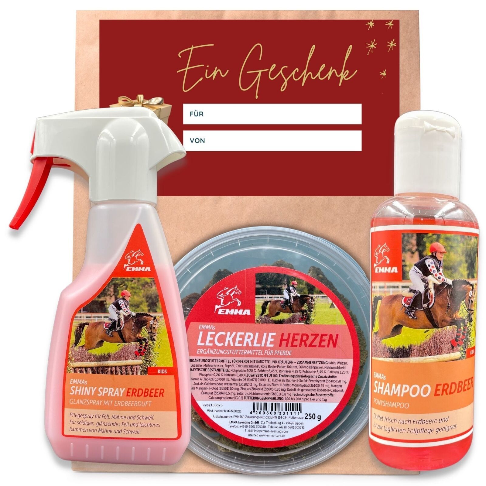 EMMA Pferde- Pflege Set Kinder, Pferdeshampoo, Mähnenspray Leckerlie Herzform3S