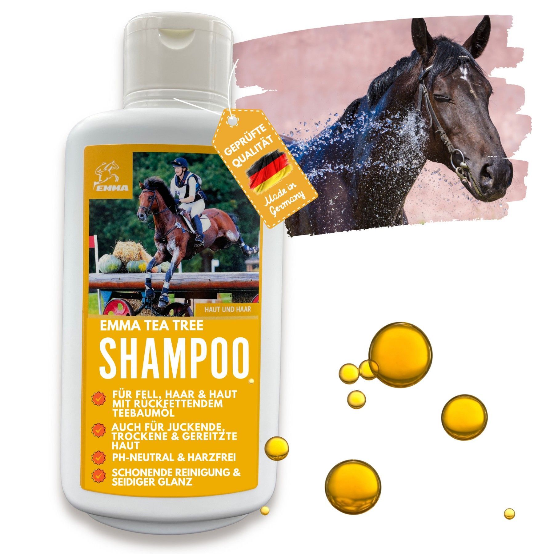 EMMA Pferdeshampoo, Pferdepflege mit Teebaum-Öl für Fell & Mähne Premium 500 ML