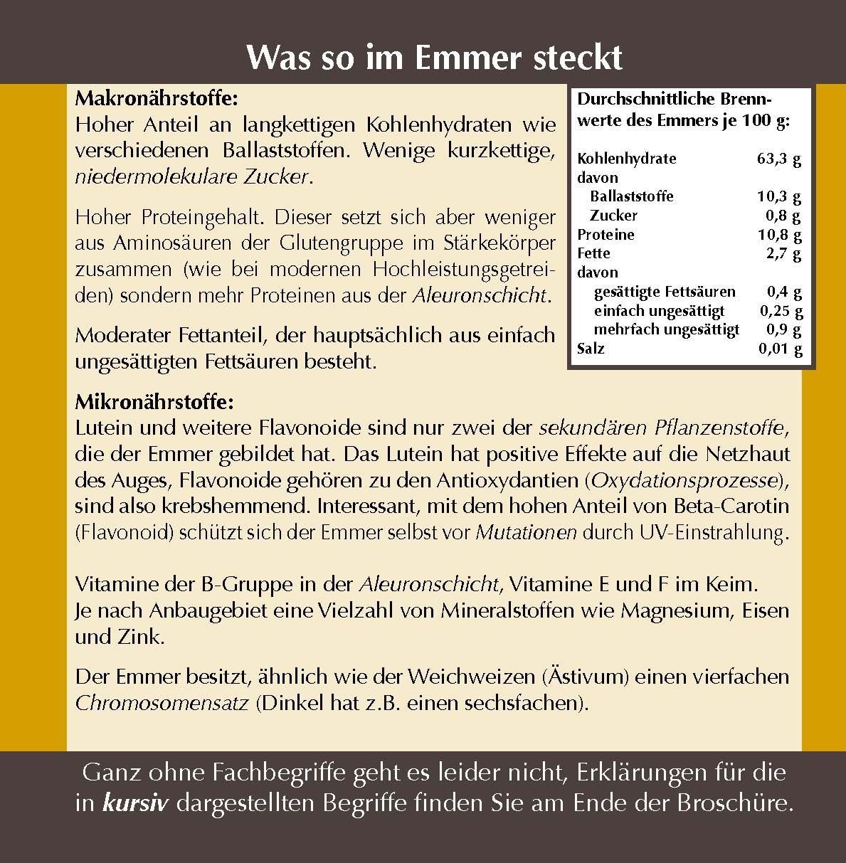 Broschüre mit vielen Informationen und Rezepten rund um den Emmerweizen