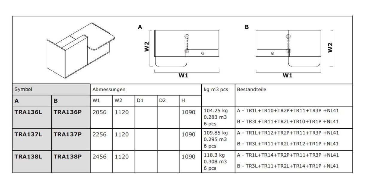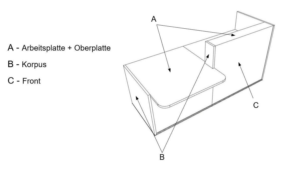 Empfangstheke Vivo 2056-2456 x 1120 x 1090mm mit Empfangstisch