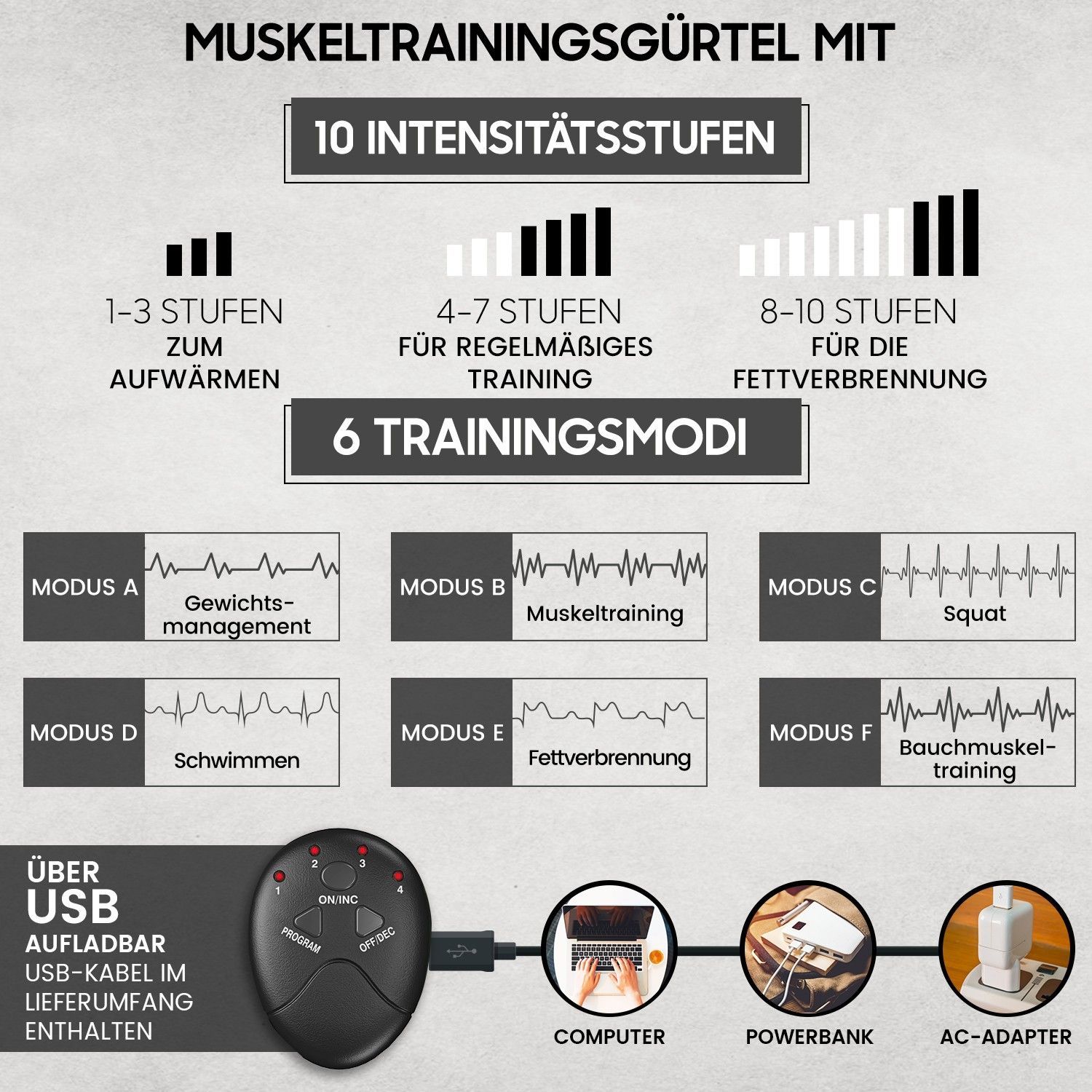 6 Modi und 10 Intensitätsstufen - ABS Stimulator Ganzkörper - USB Bauchtrainer