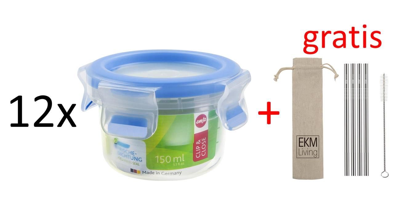 Emsa Emsa 12er Set Runde Frischhaltedose mit Deckel, 0.15 Liter, Transparent/Blau,
