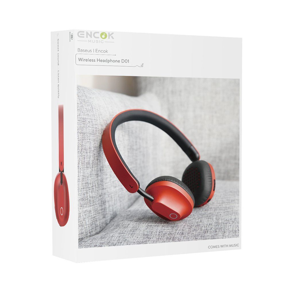 Baseus Encok D01 Earphones On-Ear kabellos Kopfhörer Bluetooth 360° Mikrofon Rot