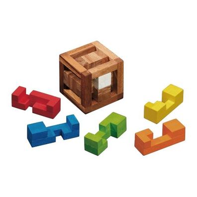 • Somawürfel bunt - Robinienholz - 7 Puzzleteile - Knobelspiel - Geduldspiel