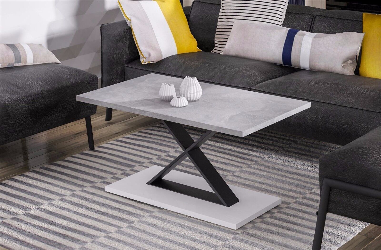 moderner Couchtisch 100 cm Material: MDF Maße: Breite: 100 cm Länge: 60 cm Höhe: 53 cm Stabile und robuste Verarbeitung hochwertiges und langlebiges Nachbildungsfurnier Beton Holzoptik mit fühlbarer Struktur Metallgestell schwarz Bodenplatte wird in weiß geliefert, ist aber auch in der Farbe wie die
