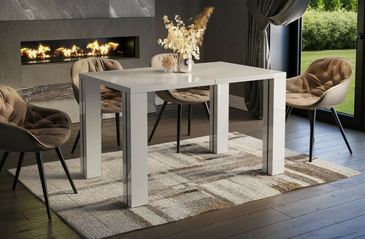 moderner Esstisch 80-125 cm Material: MDF Maße: Breite: 80-125 cm Länge: 80 cm Höhe: 76 cm Stabile und robuste Verarbeitung hochwertiges und langlebiges Nachbildungsfurnier Synchronauszug - mit einer Erweiterungsplatte 45 cm Tischplatte wird vormontiert geliefert Tischbeine mit Klarglas-Streifen Inf