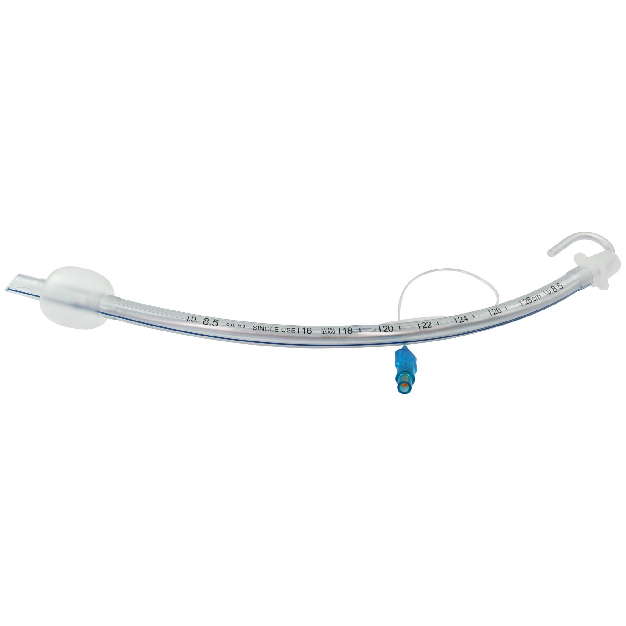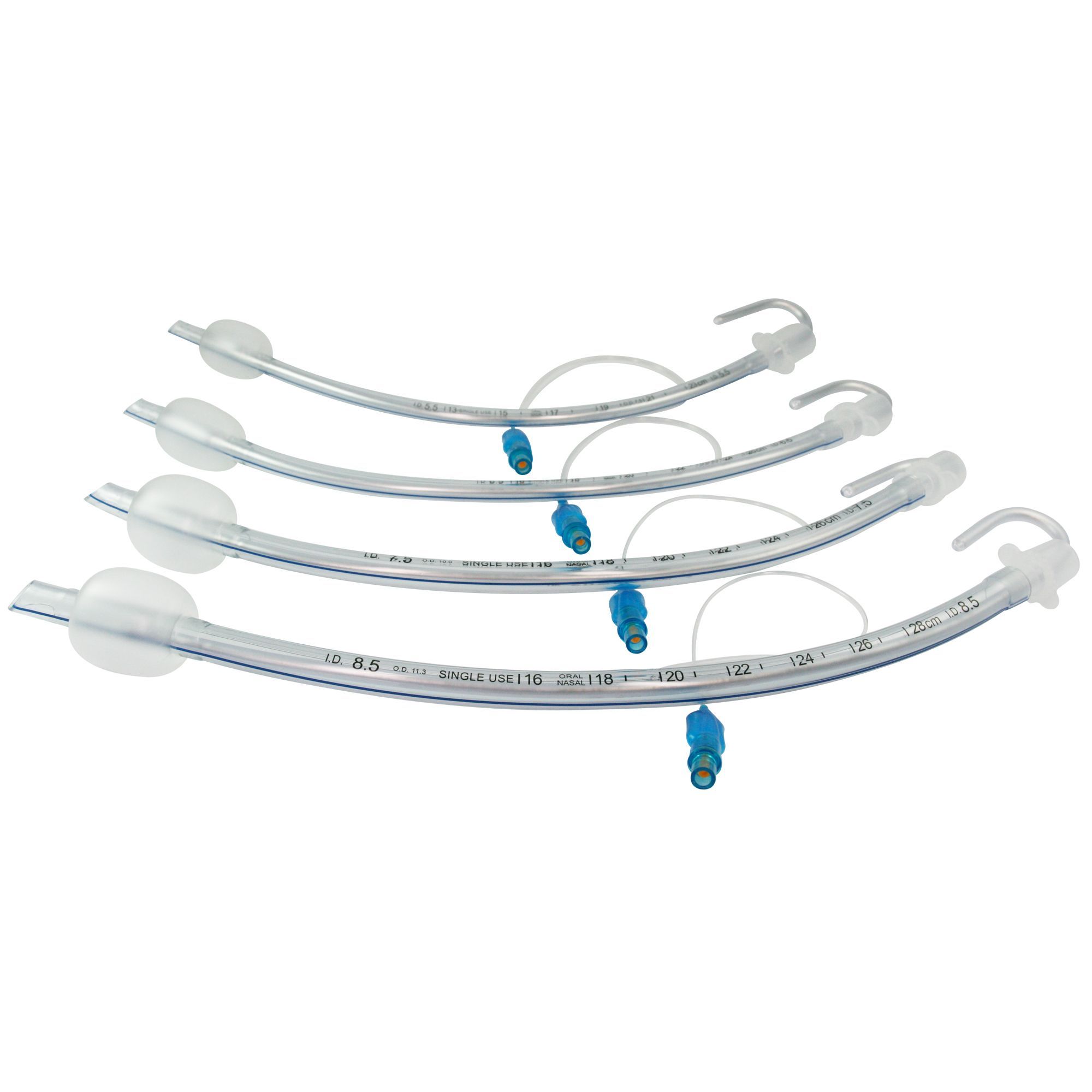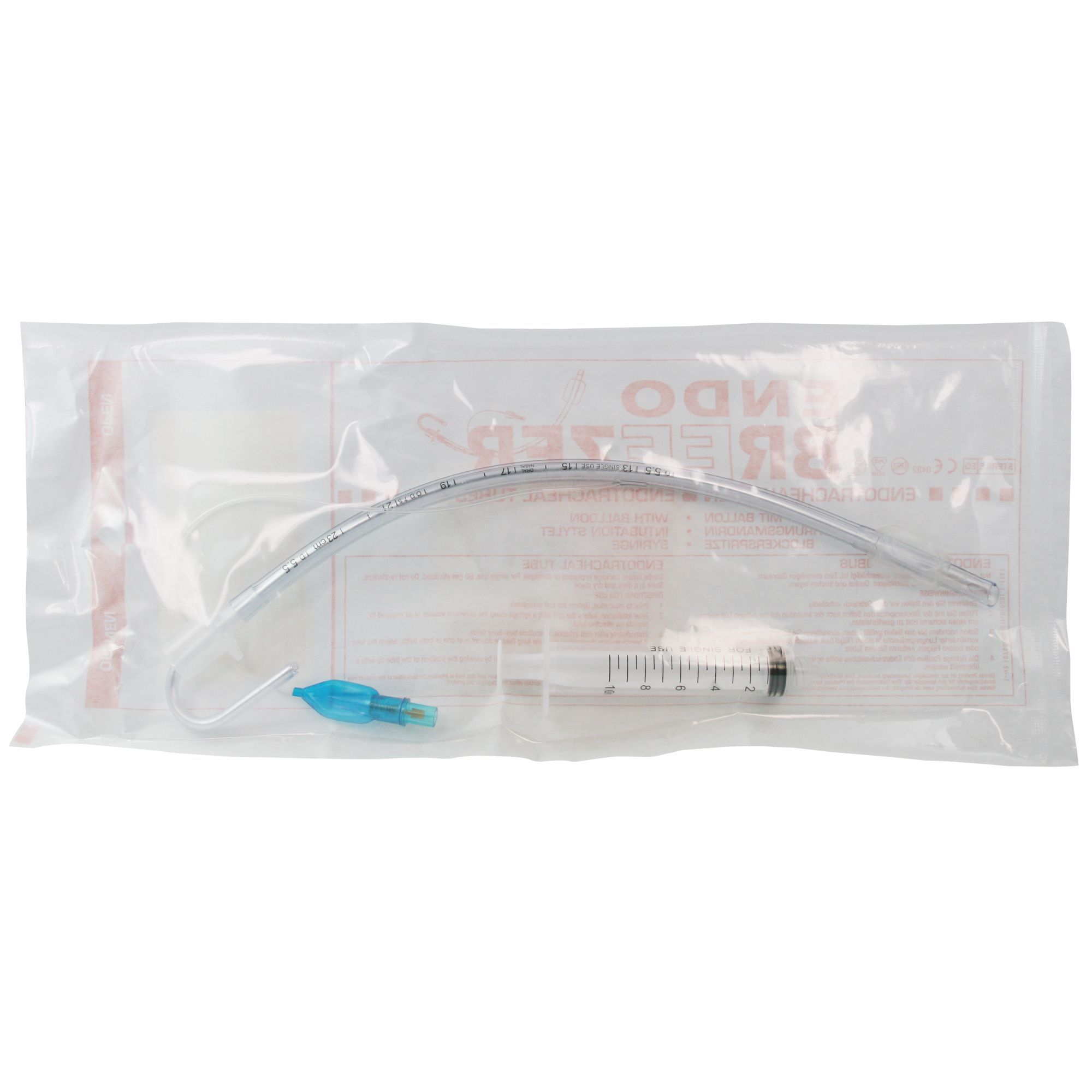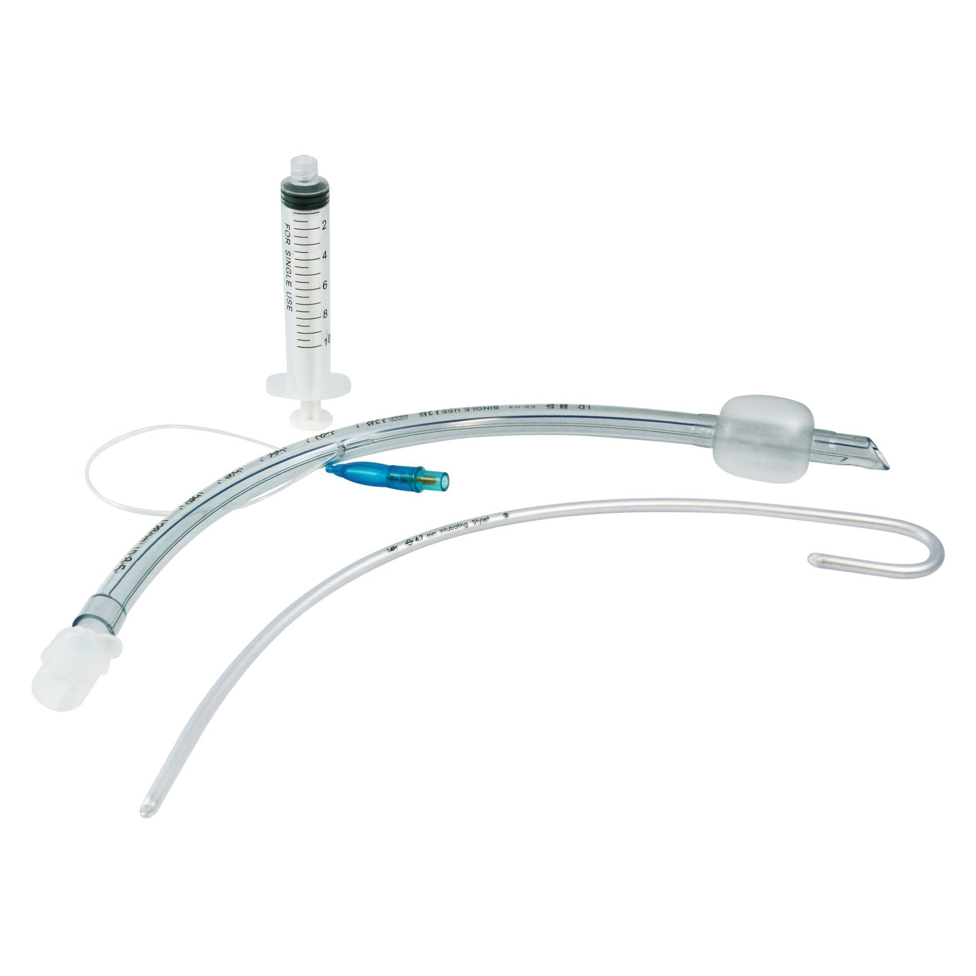3-teiliges Endotrachealtuben Set mit integriertem Einweg-Einführungsmandrin und 10 ml Blockerspritze.