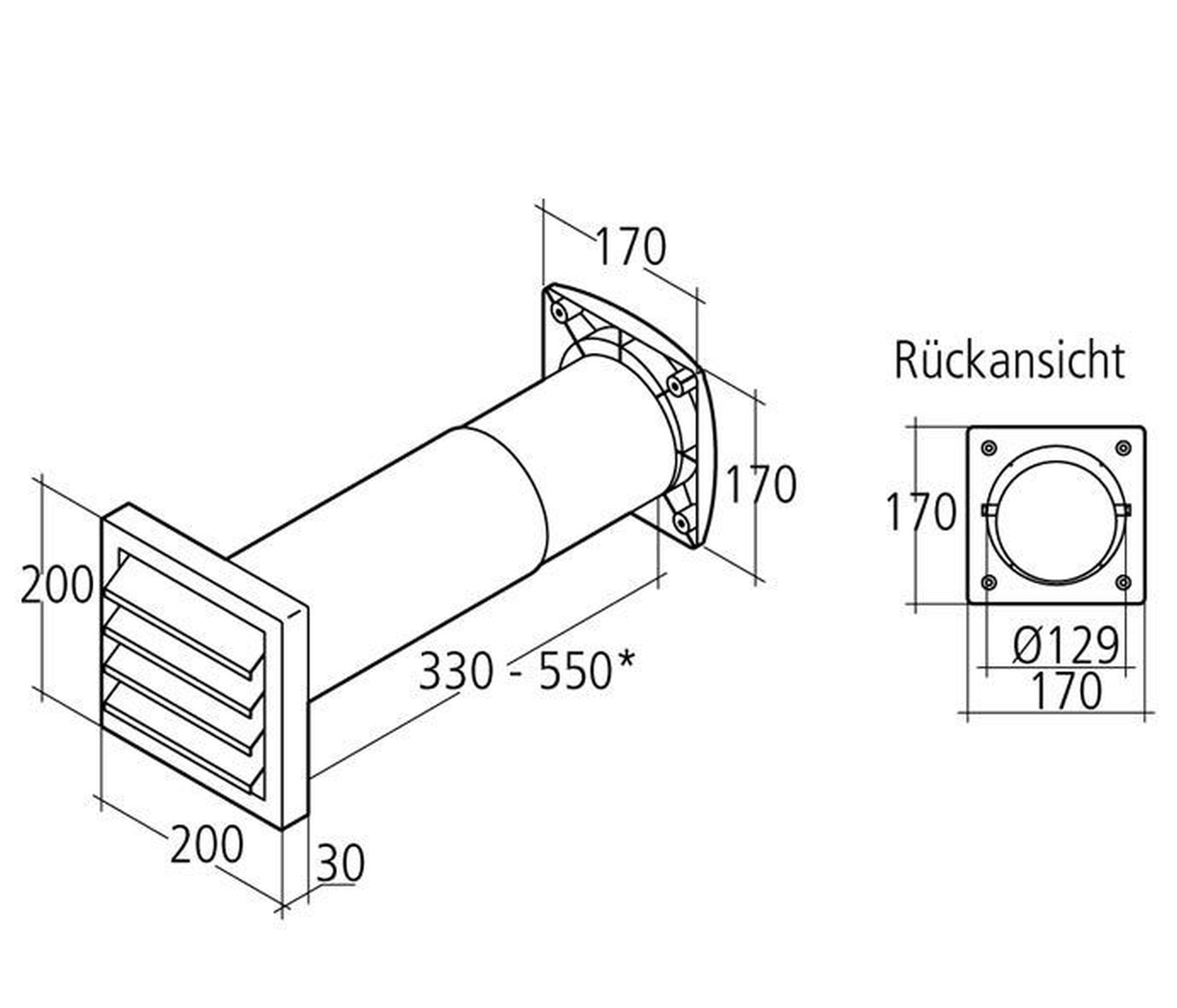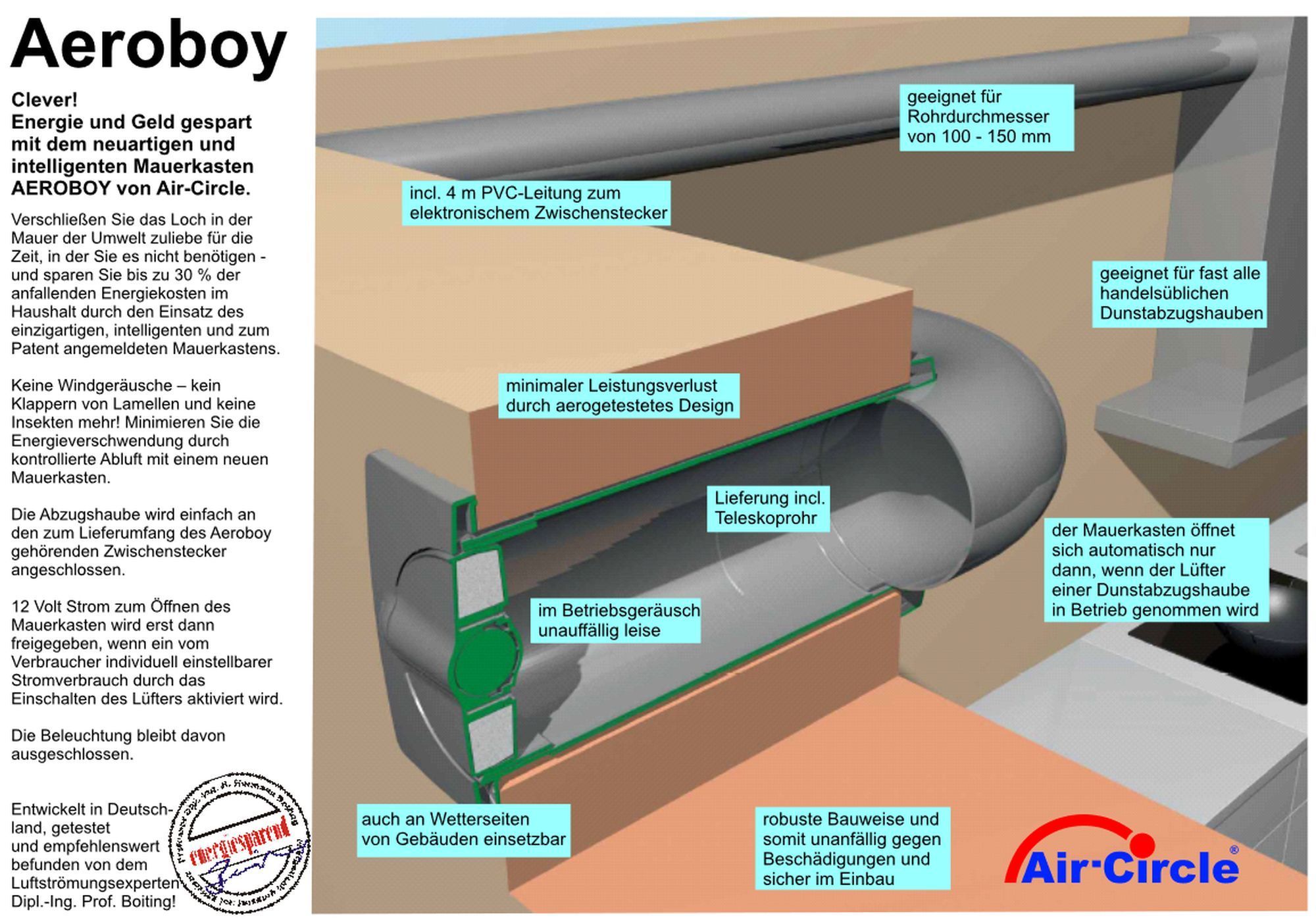 Energiespar Teleskop-Mauerkasten Aeroboy, Dunstabzug Ø 125mm Küche