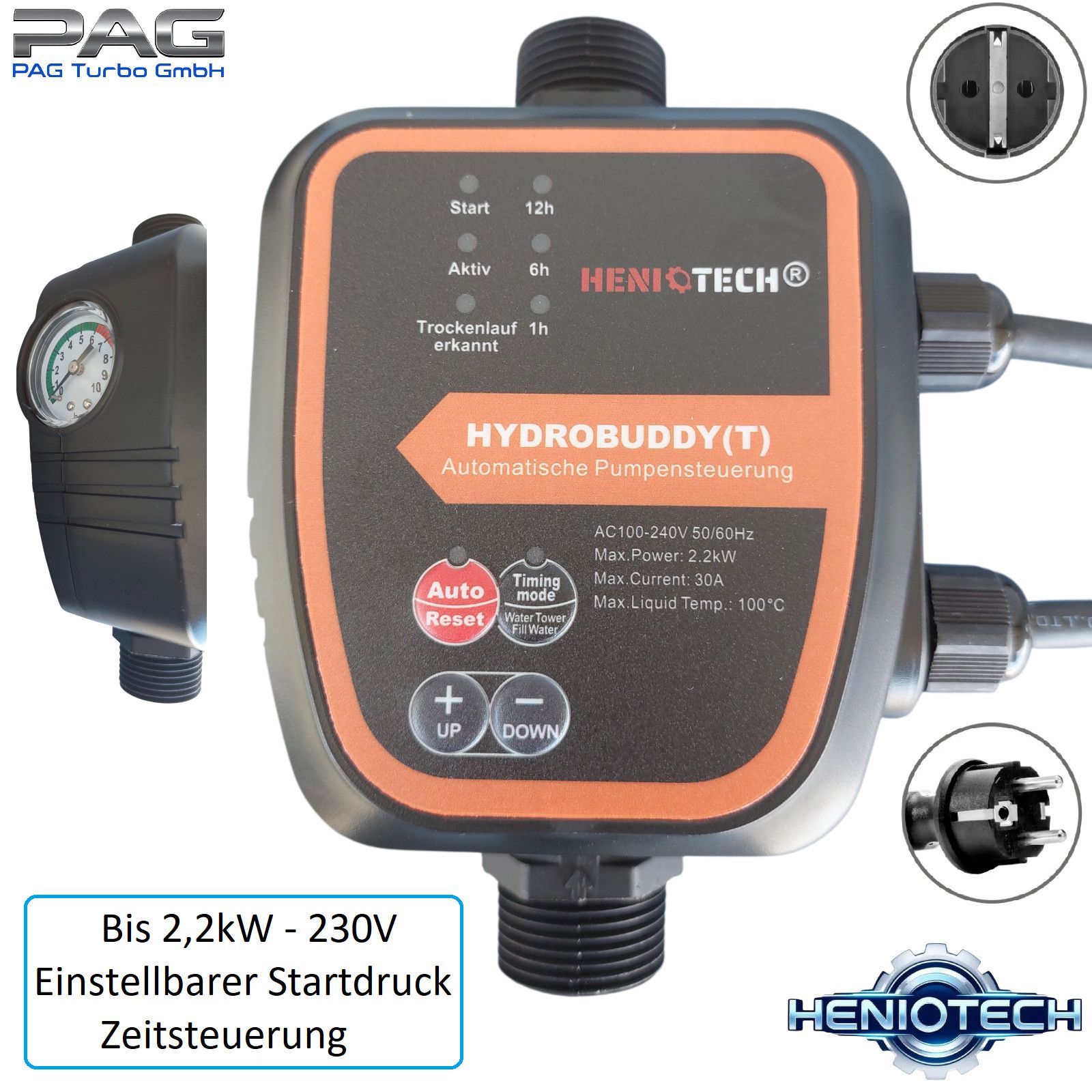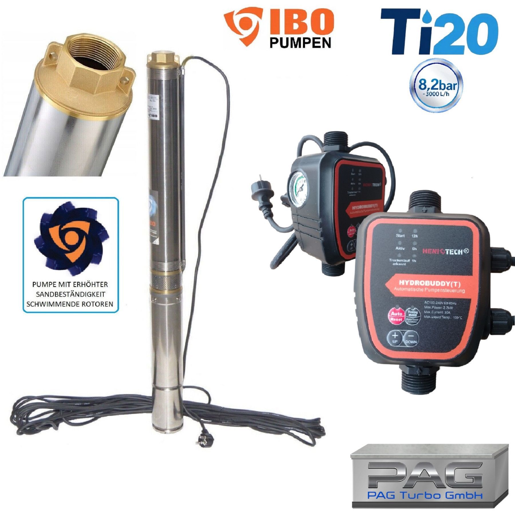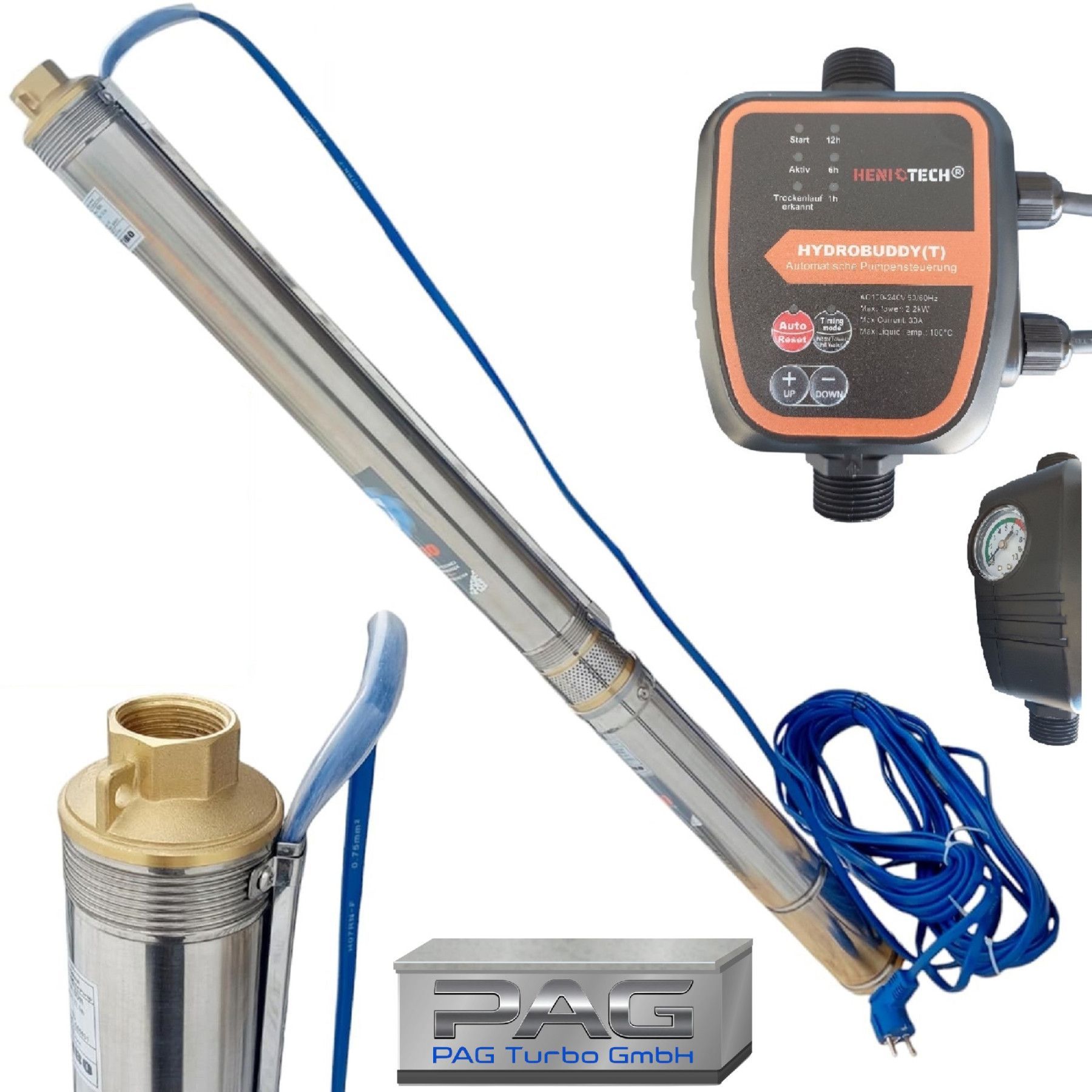 Energiesperende 3" Tiefbrunnenpumpe 3000l/h - 8,2bar + Pumpensteuerung Hydrobuddy T