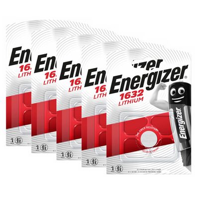 • 5x Energizer CR 1632 3V Batterie Lithium Knopfzelle DL1632 1er Blister CR1632