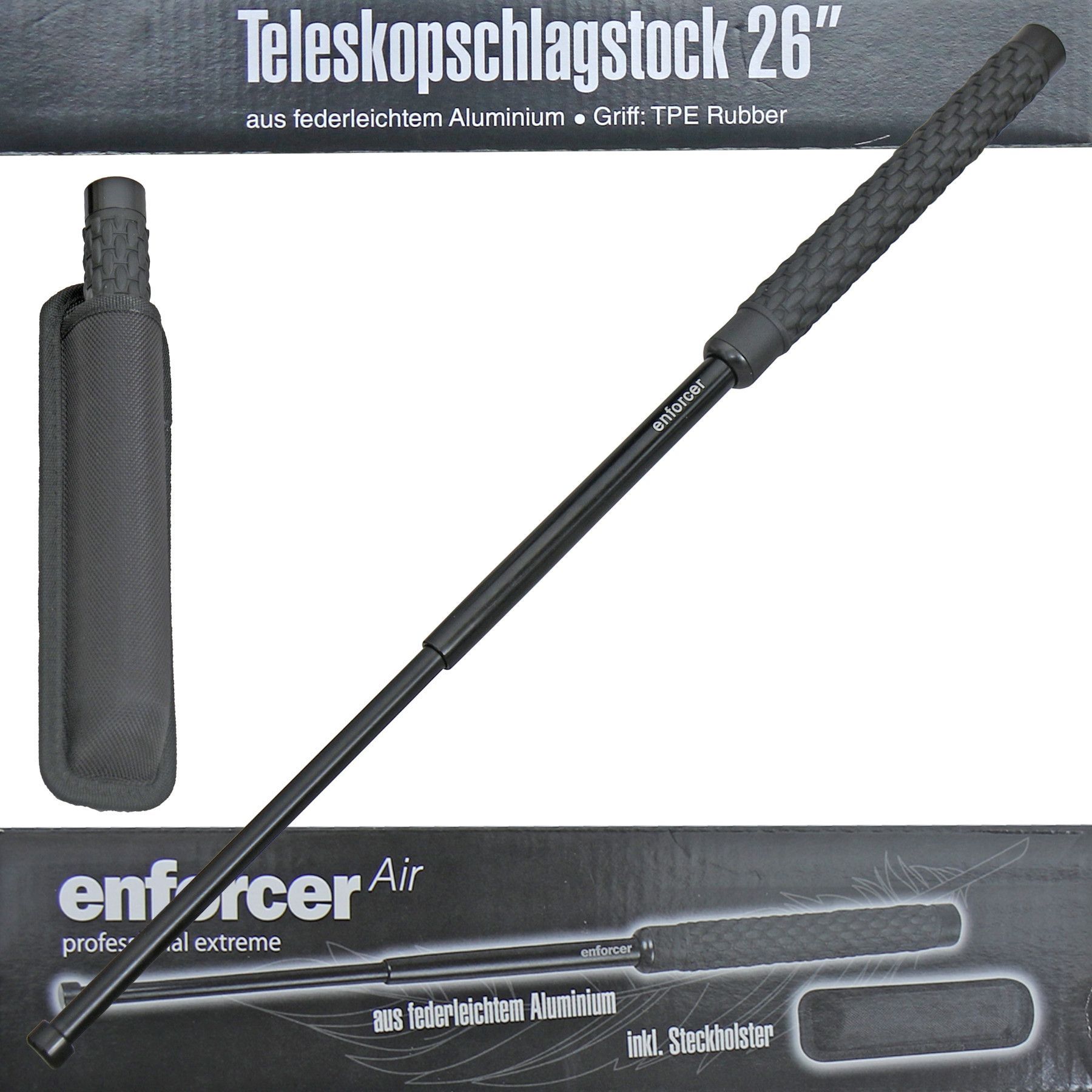 Enforcer AIR 26" Teleskopschlagstock 65 cm Aluminium TPE Griff Steckholster (18 + )