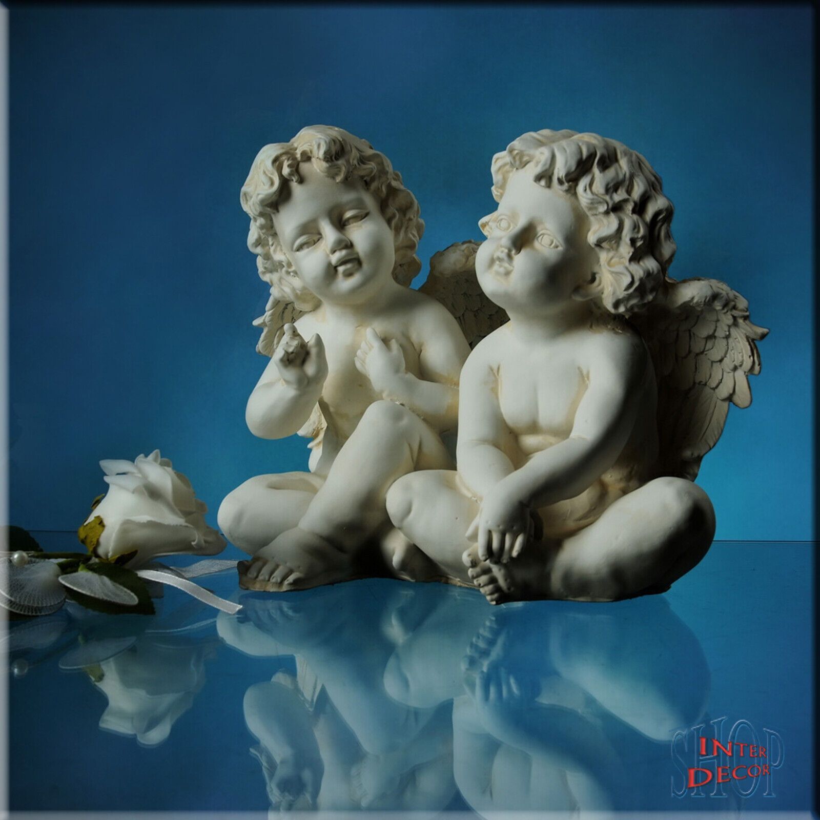 Engel Amor Pärchen Engelchen Figur Gartenfigur Geschenk Skulptur Kunstharz