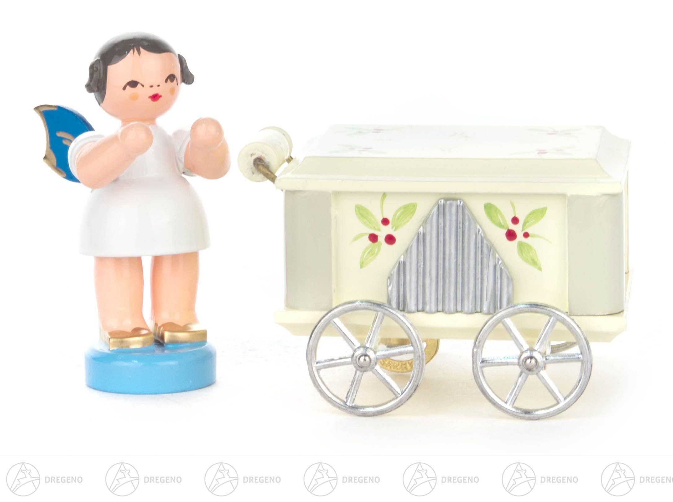 Engel an Drehorgel mit Musikwerk, blaue Flügel H=ca 5,5 cm Erzgebirge Holzfigur