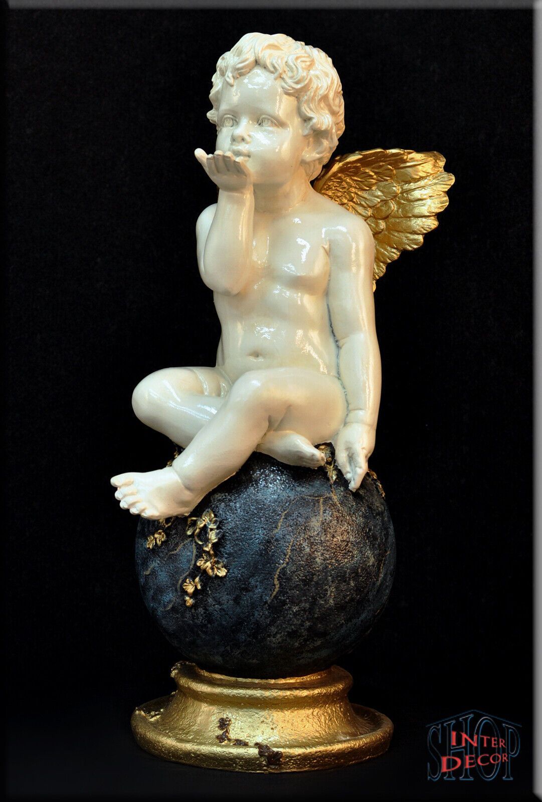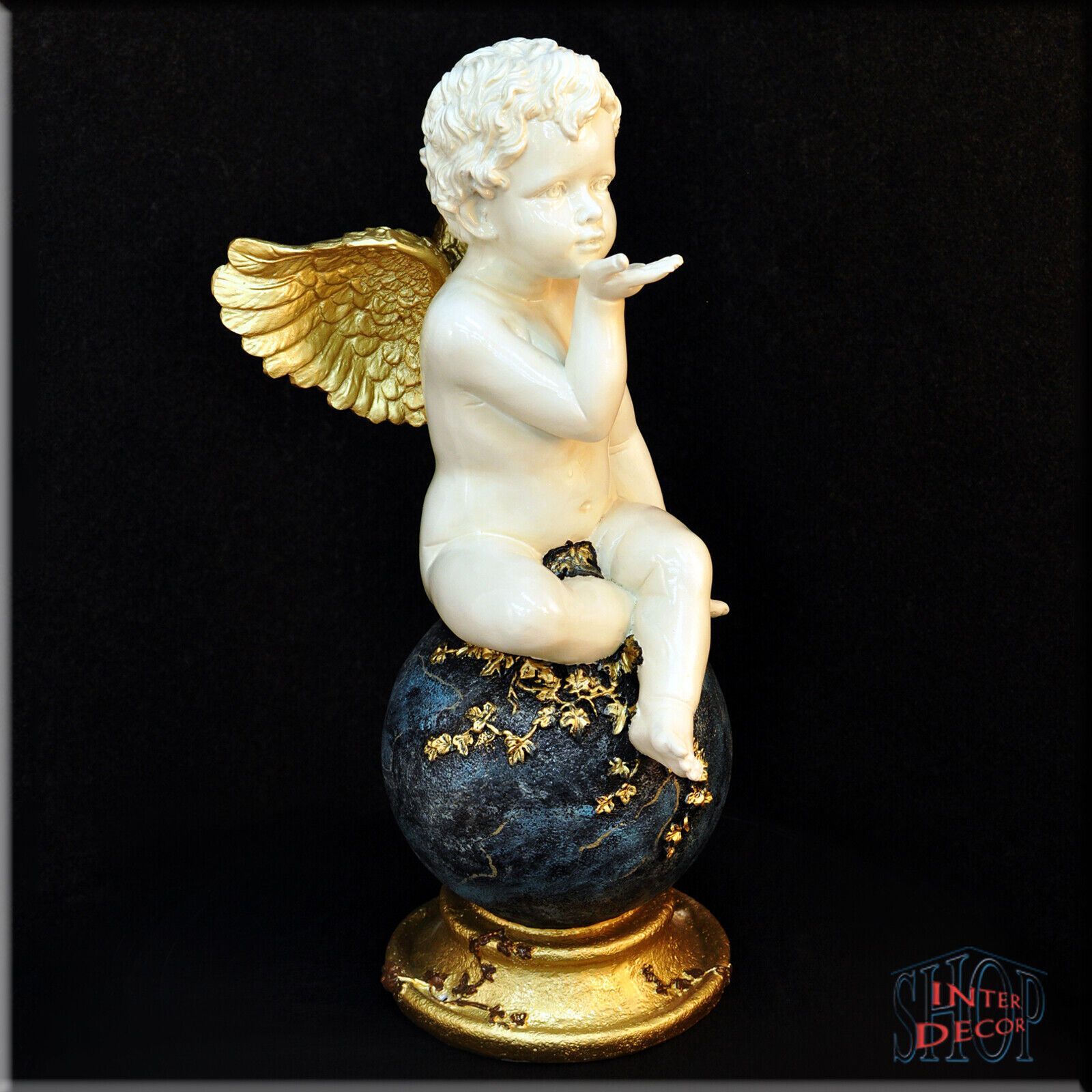 Engel auf Kugel mit Kuss Amor Figur Liebesengel Special Edition Kunstharz