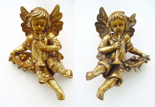 Engel hängend mit Flöten SET lebensgroß 113cm für draußen aus GFK