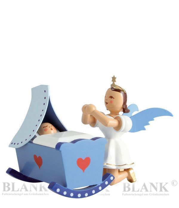 Engel Kurzrock an Wiege knieend, farbig