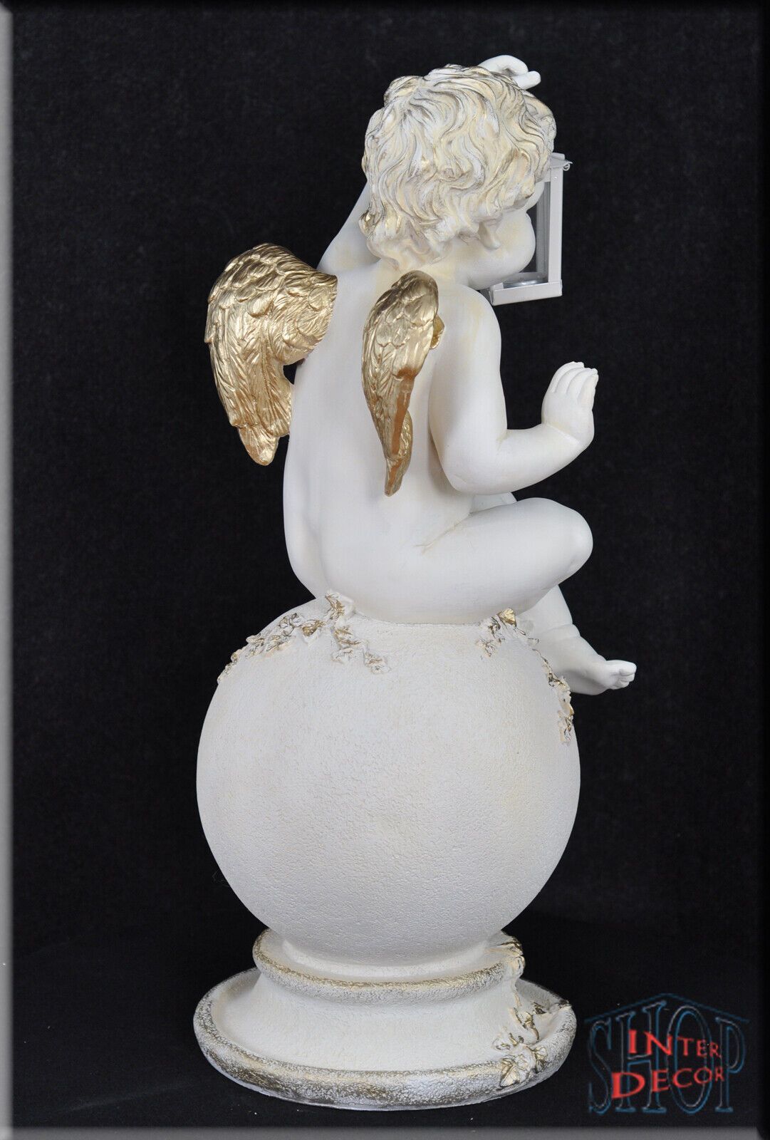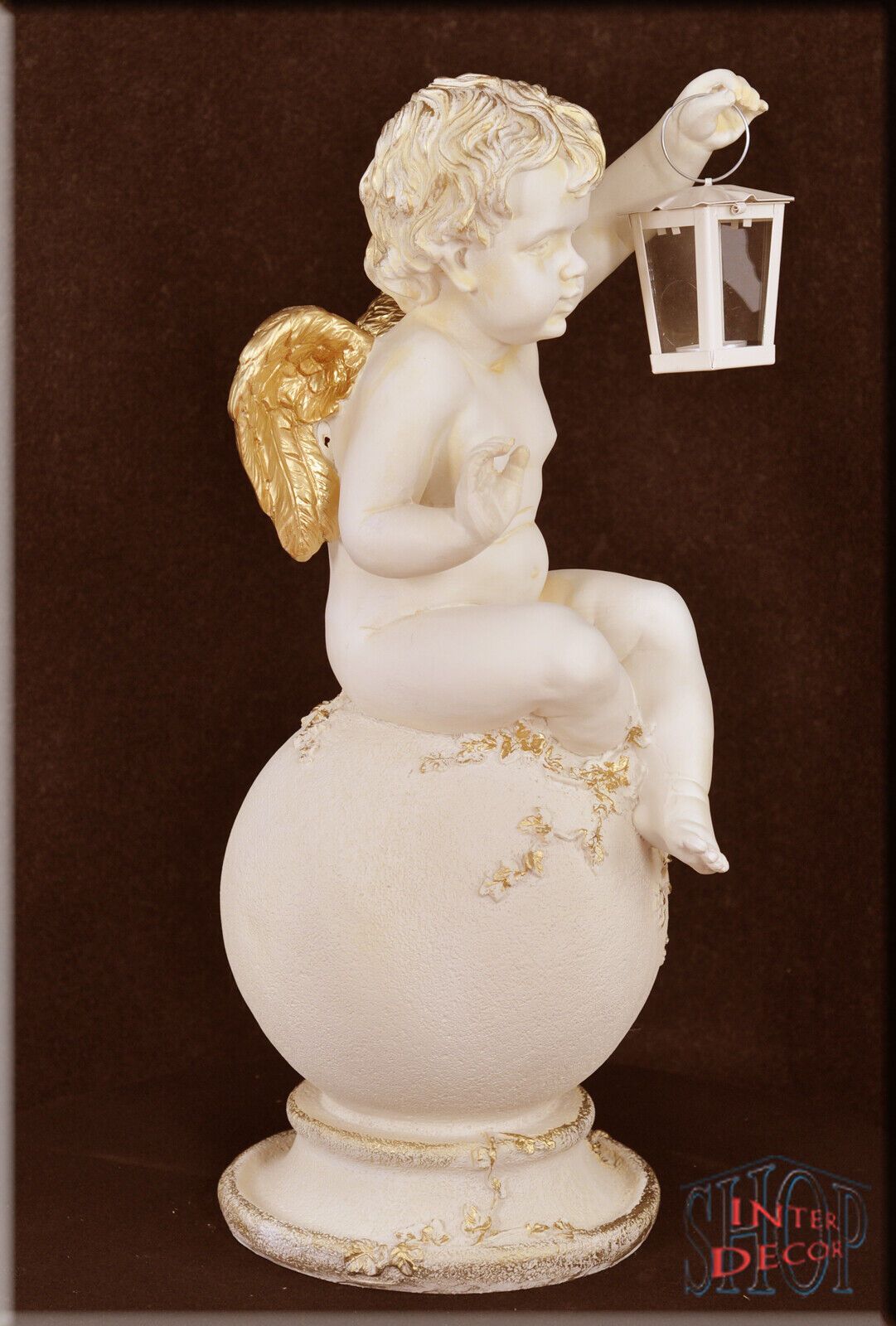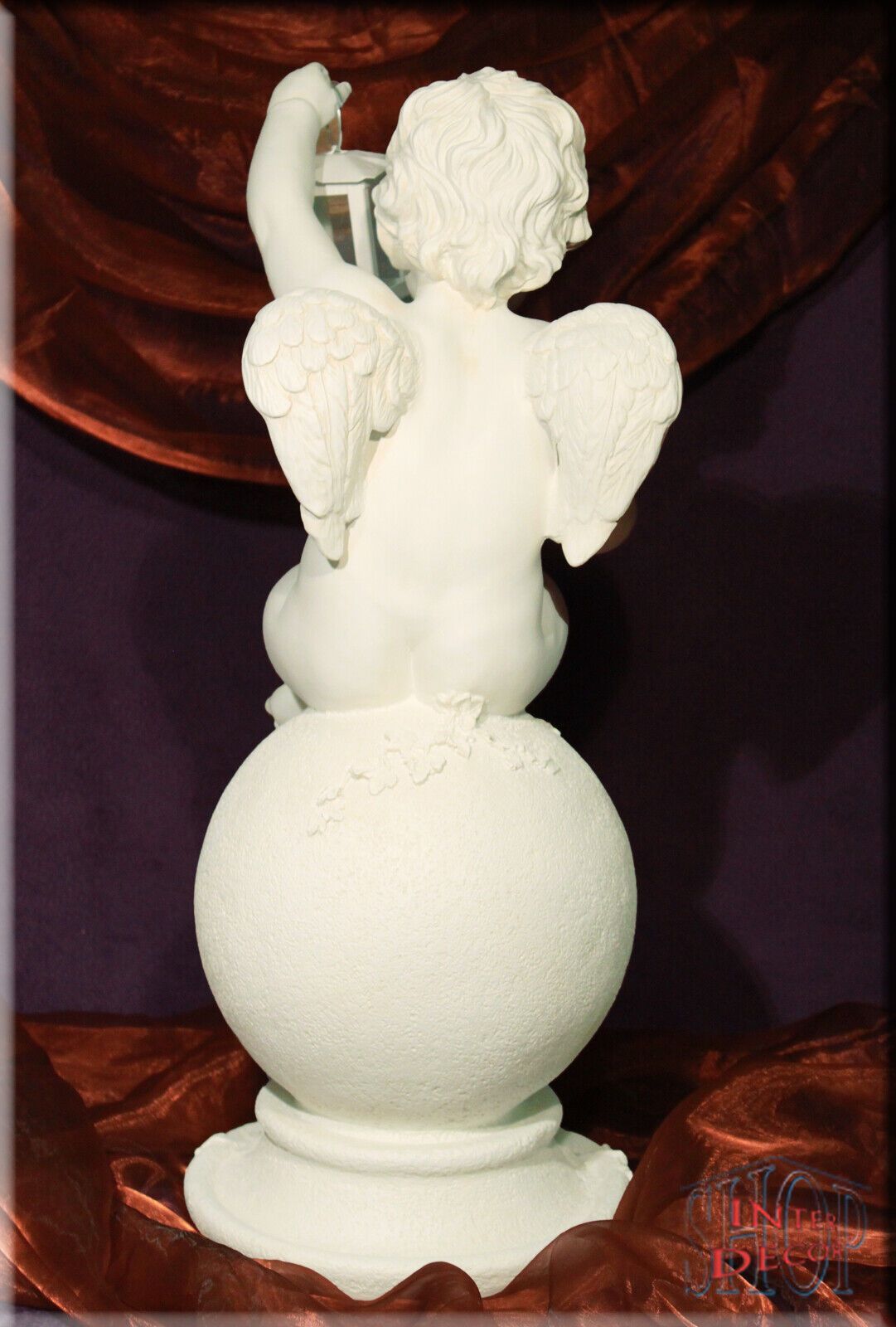 Engel Liebesengel Amor mit Laterne auf Kugel Gartenfigur Schutzengel Kunstharz