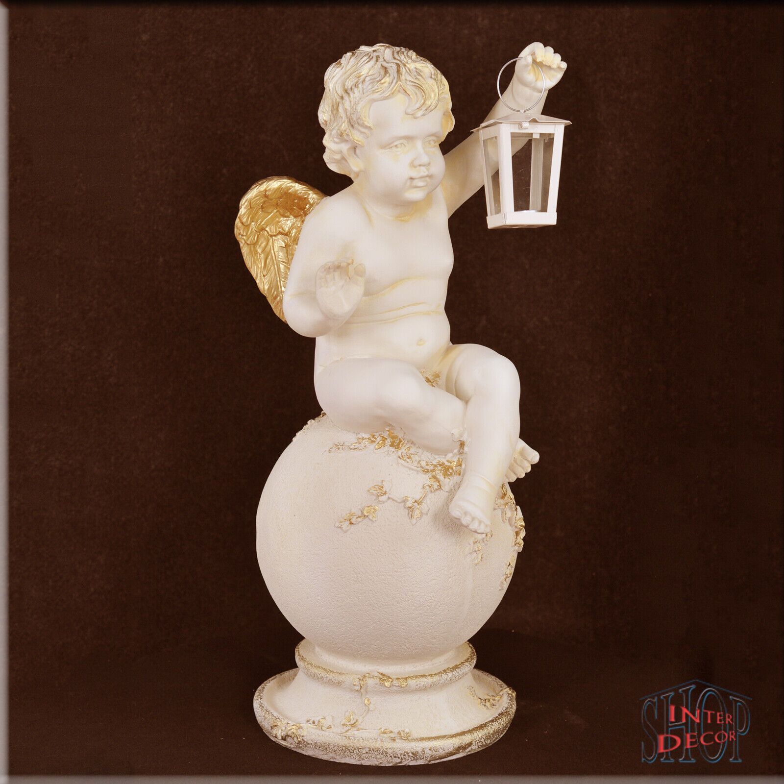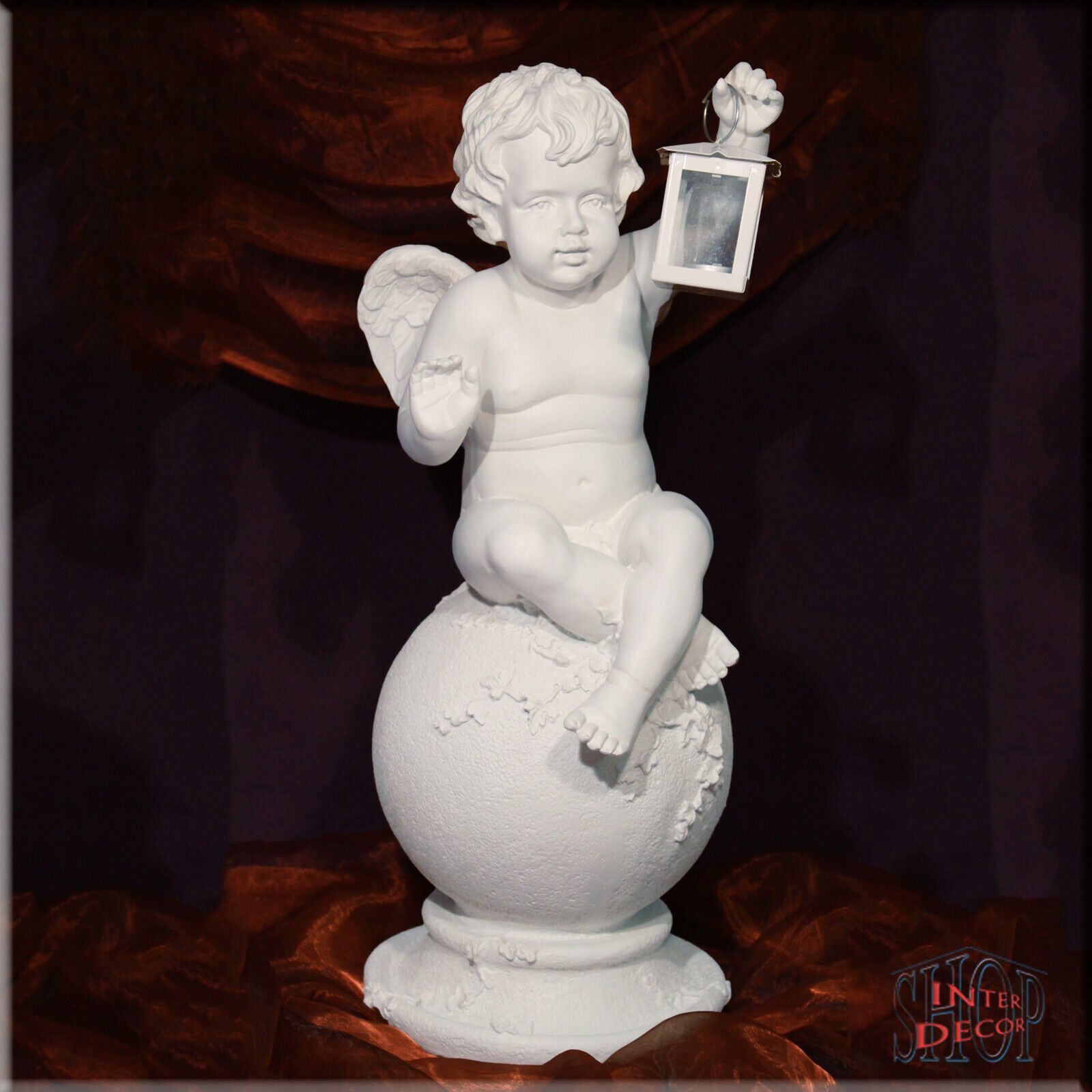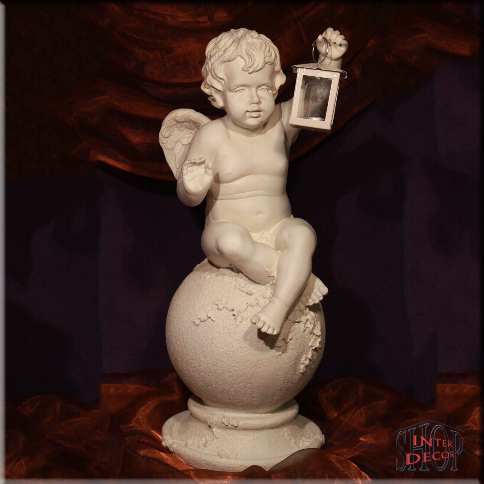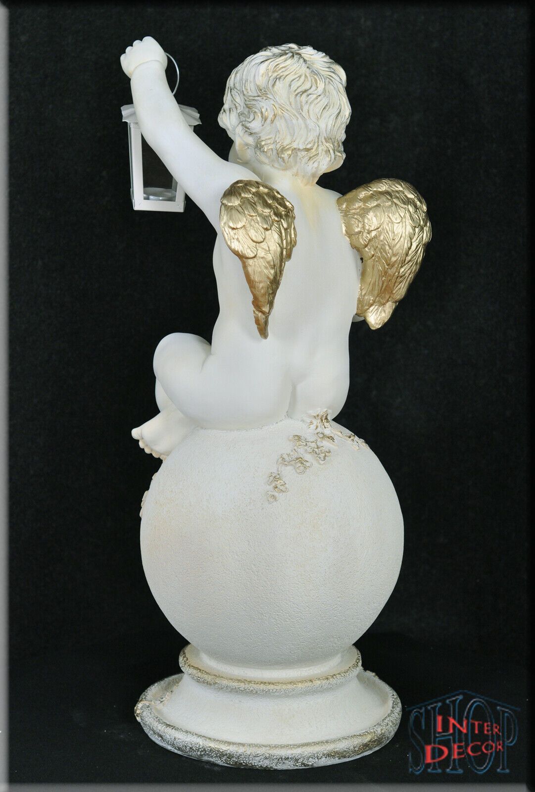 Engel Liebesengel Amor mit Laterne auf Kugel Gartenfigur Schutzengel Kunstharz