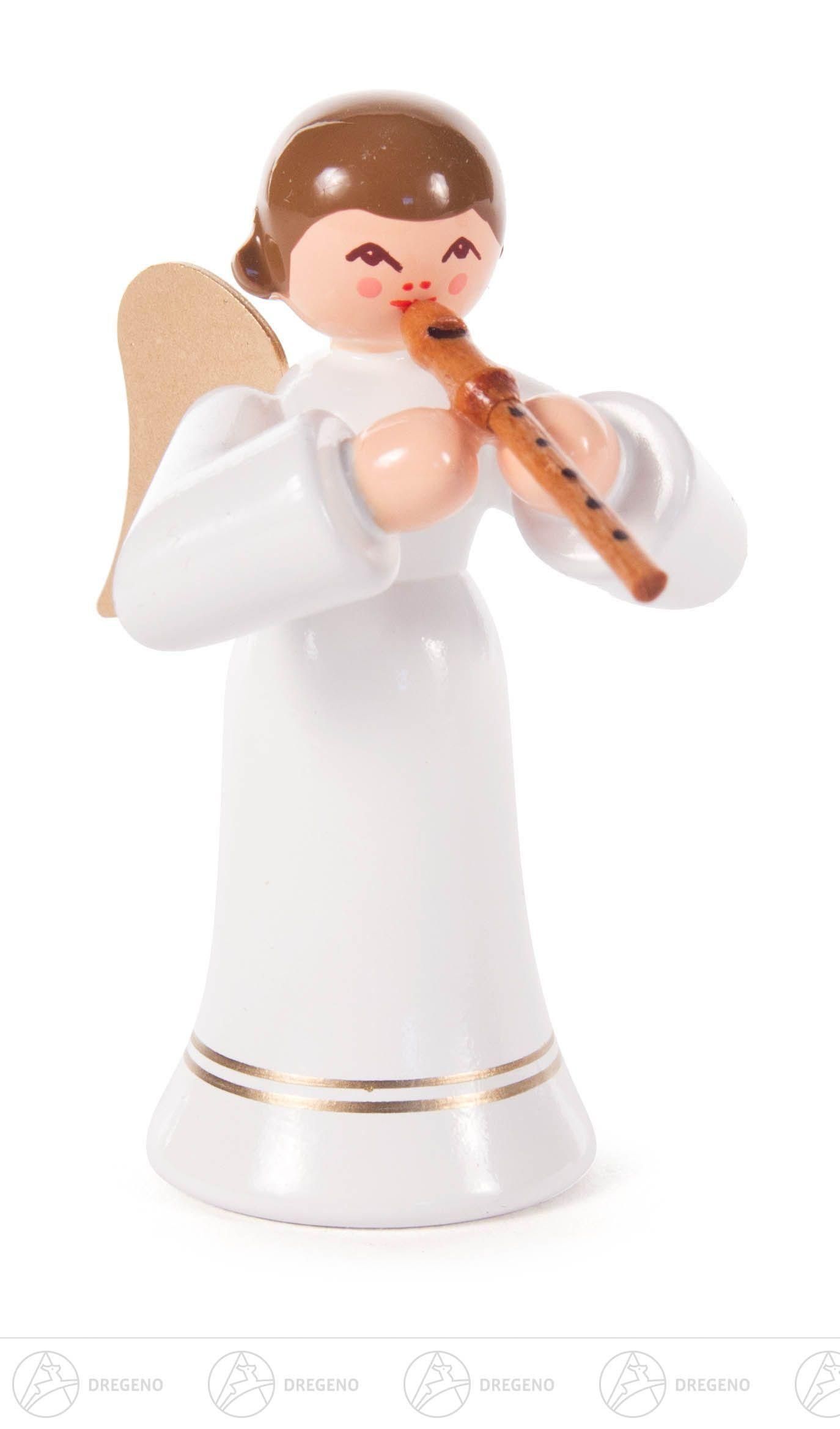 Engel mit Blockflöte, langer Rock, farbig H=ca 6cm NEU Weihnachtsfigur Holzfigur