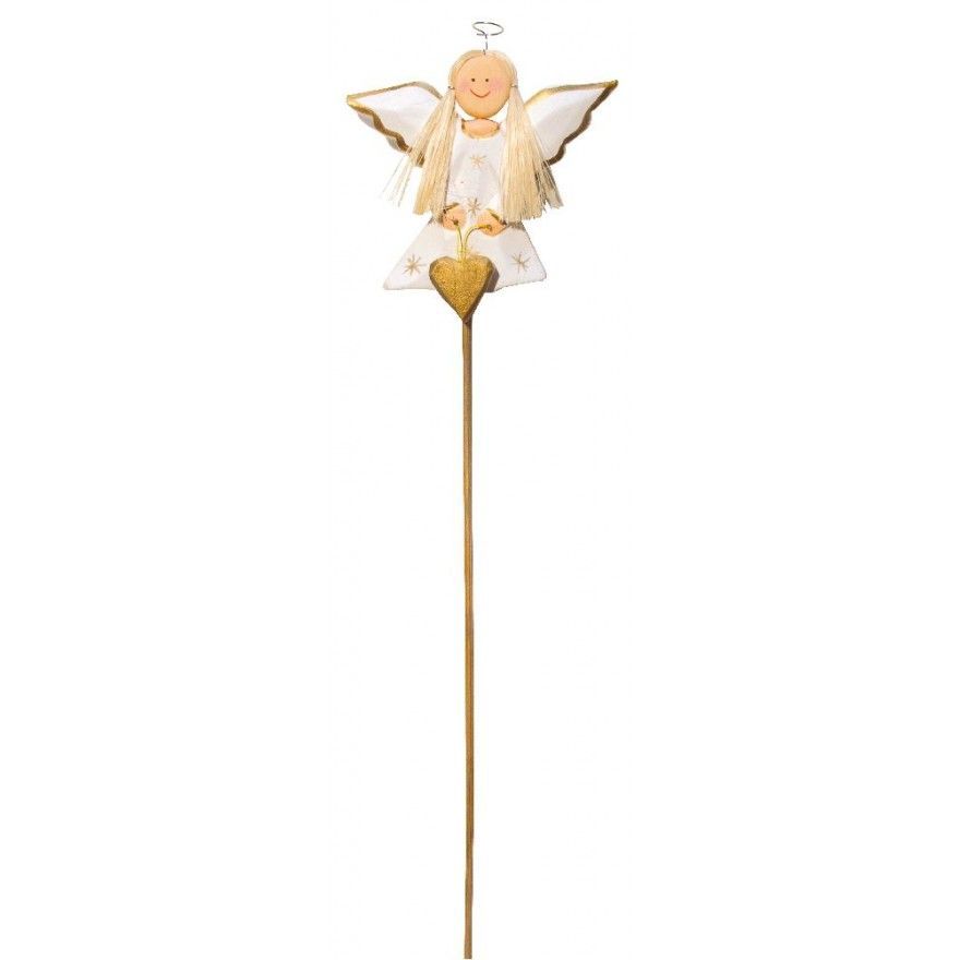 Saraswati ENGEL MIT HERZ auf Stab Holz bunt 7 x 7 cm / 40 cm Herzengel Schutzengel