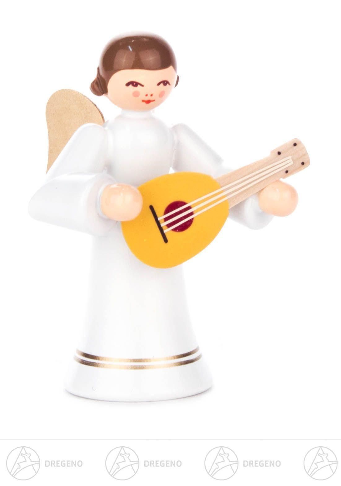 Engel mit Mandoline, langer Rock, farbig H=ca 6cm NEU Weihnachtsfigur Holzfigur