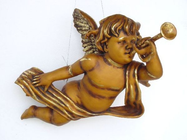 Engel mit Posaune rechts lebensgroß 100cm für draußen aus Polyresin