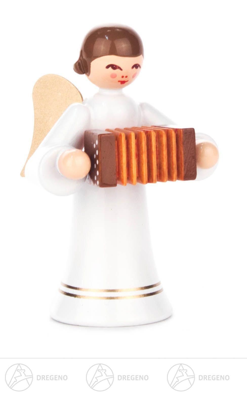 Engel mit Ziehharmonika, langer Rock, farbig H=6cm NEU Weihnachtsfigur Holzfigur