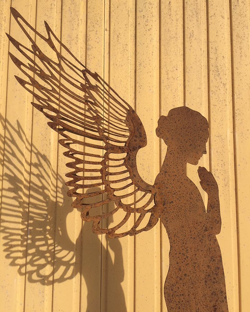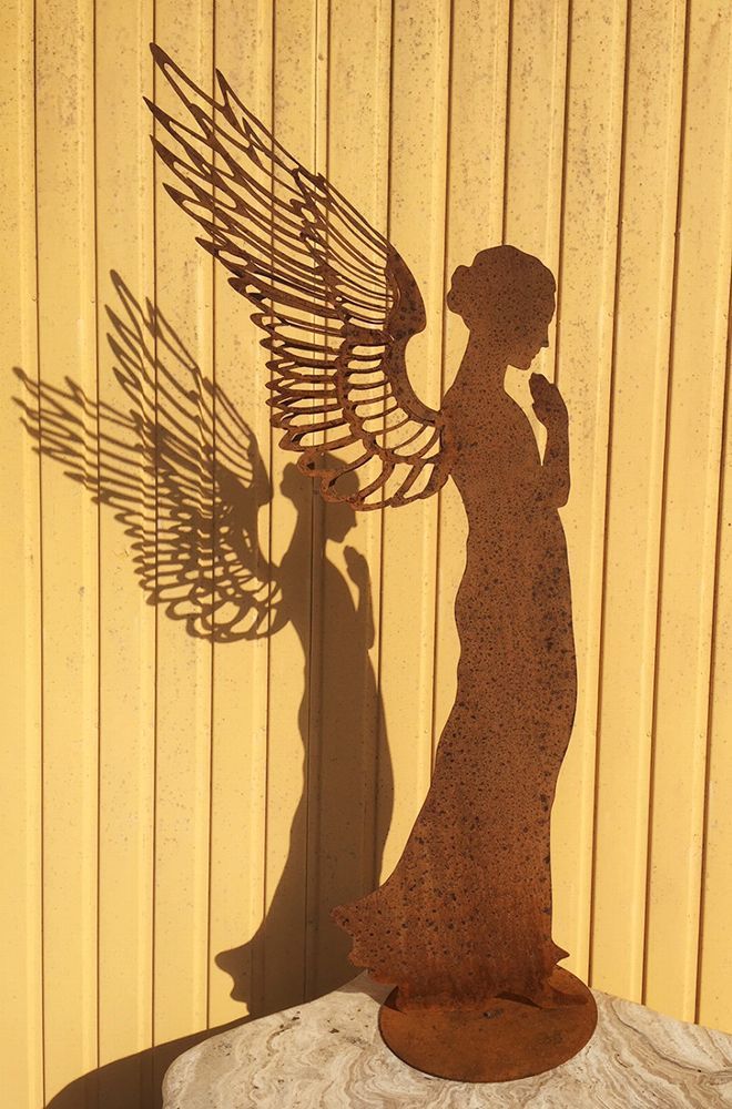 Engel Santine betend 138 cm filigrane Doppelflügel Edelrost Rost Weihnachtsengel