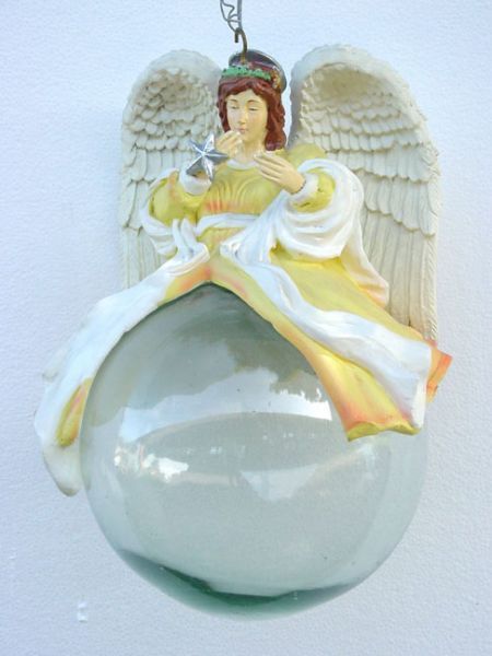 Engel sitzend auf Glaskugel verkleinert 47cm für draußen aus Polyresin