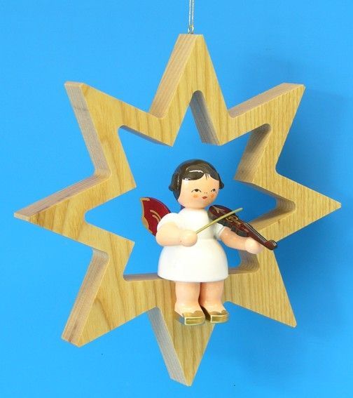 Engel sitzend groß mit Violine, rote Flügel - 197/179/14R