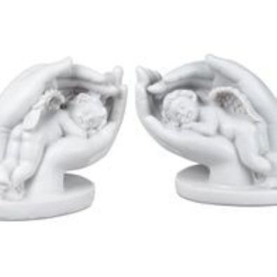 • 1 von 2 Dekorativer Engel in der Hand Keramik klassik weiss 12cm - Geschenke zur Geb