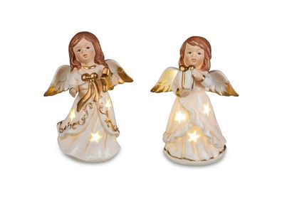 • 1 von 2 Weihnachtsschmuck Engel Figur aus Porzellan 12cm mit LED Licht sortierter Art