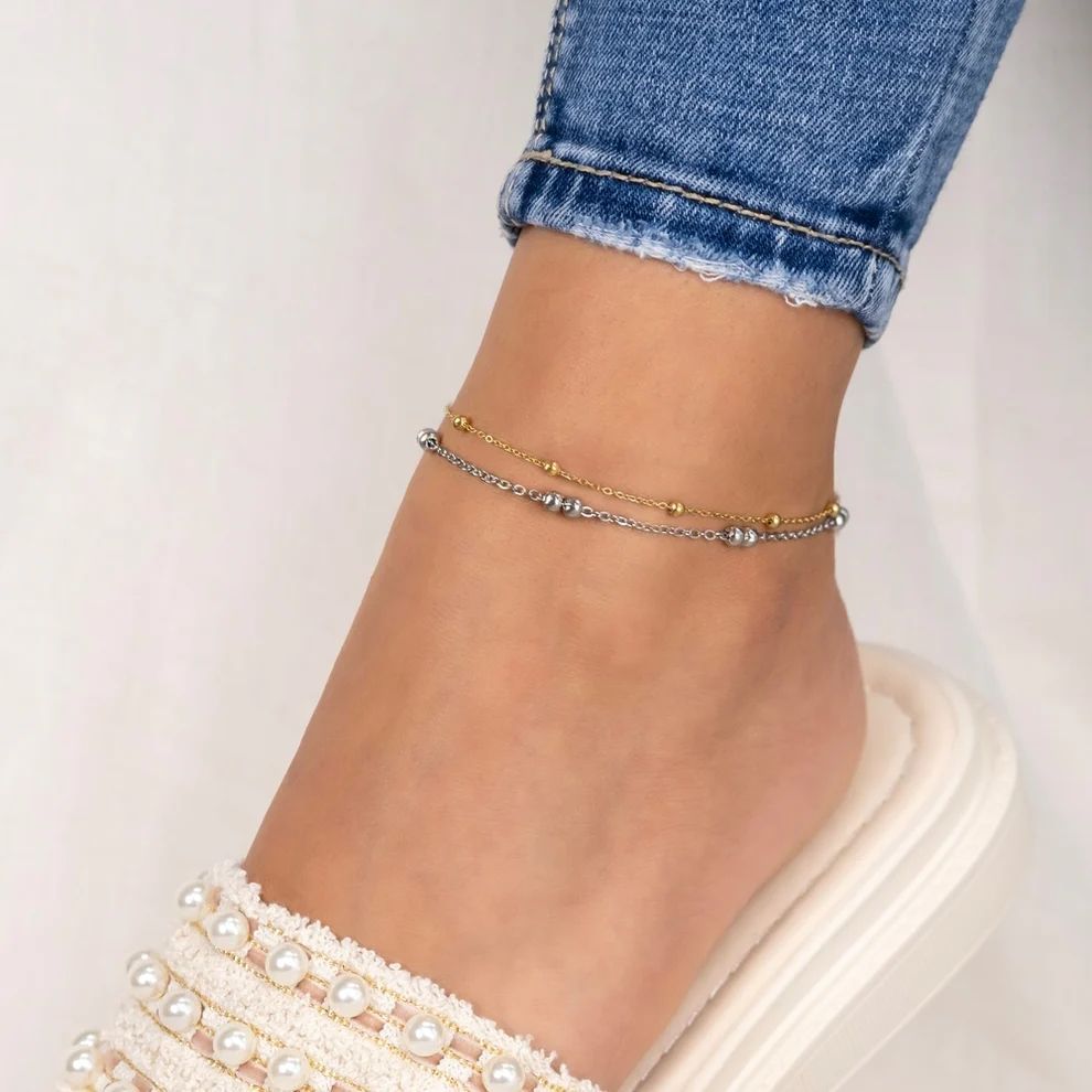 Engelsrufer Fusskettchen Edelstahl Bicolor mit Perlen ERFS-LILMOON-G