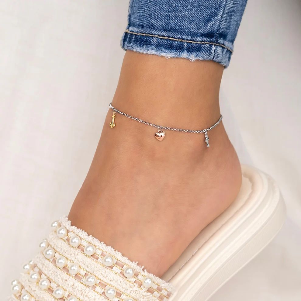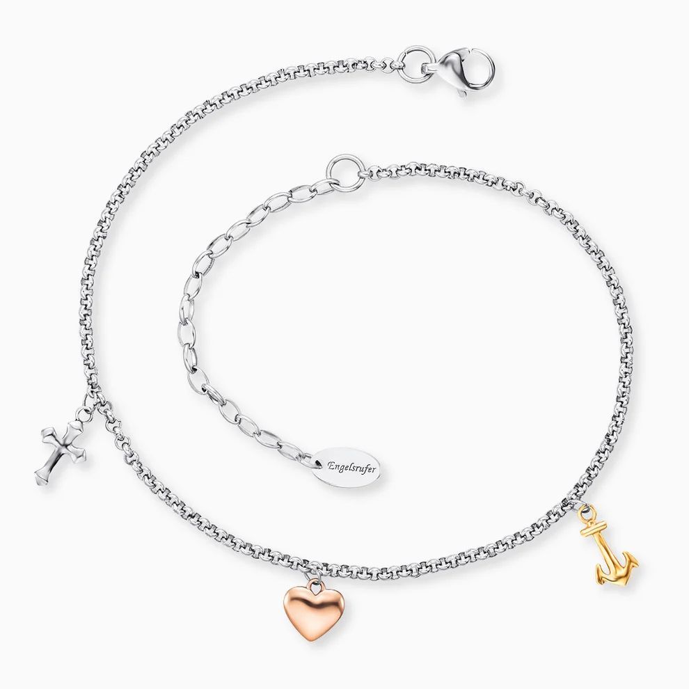 Engelsrufer Fusskettchen Edelstahl Glaube Liebe Hoffnung Tricolor ERFS-FLH-TRI