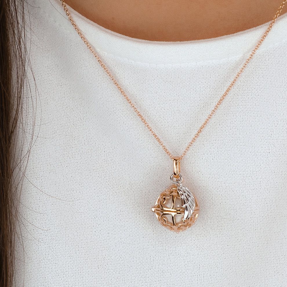 Engelsrufer Halskette 925er Silber Roségold mit Klangkugel Weiß Größe XS