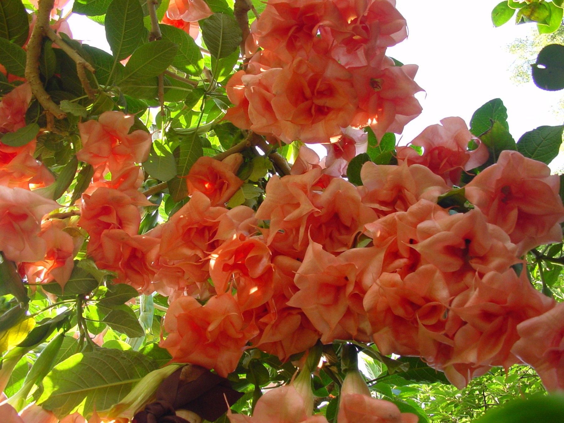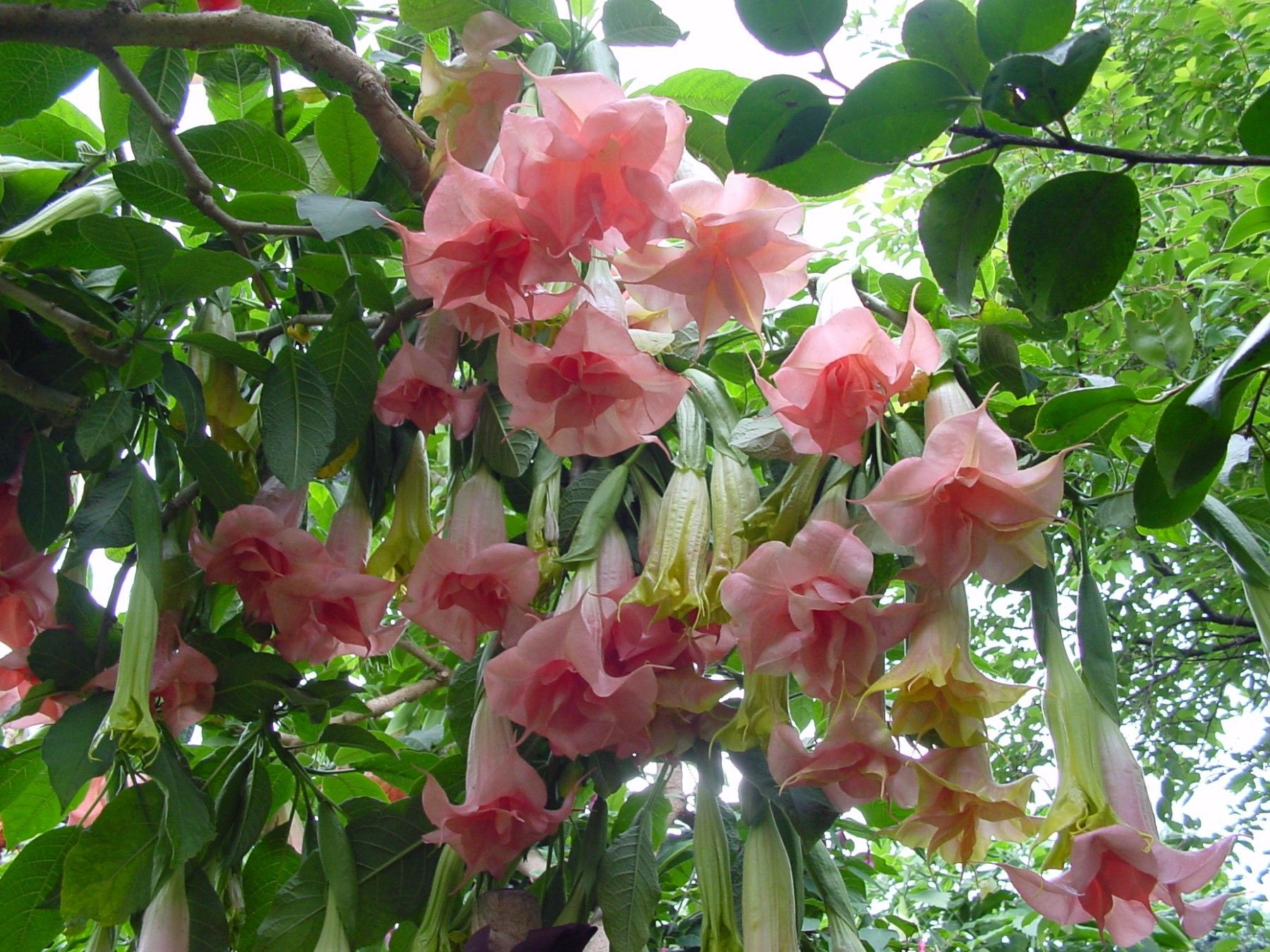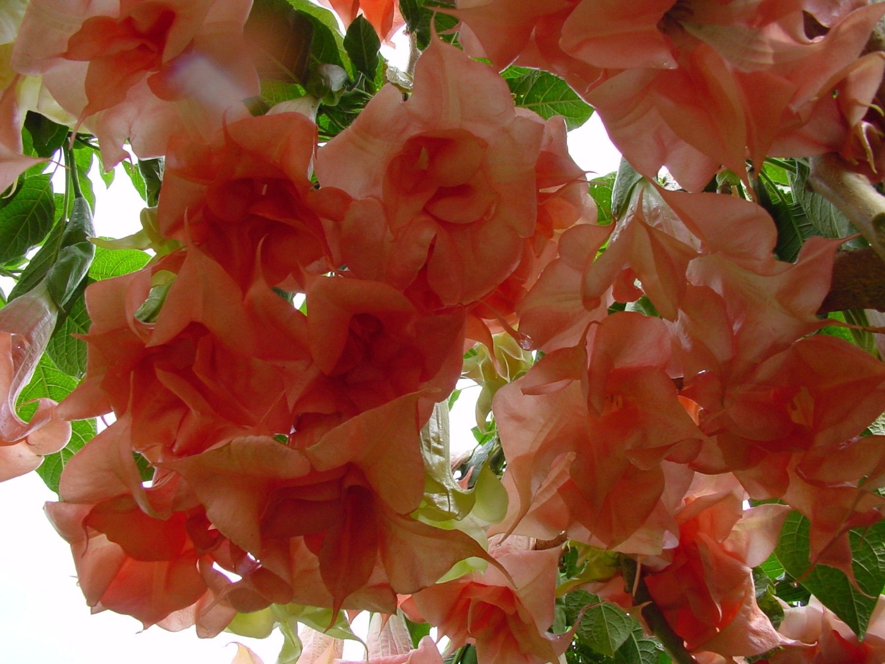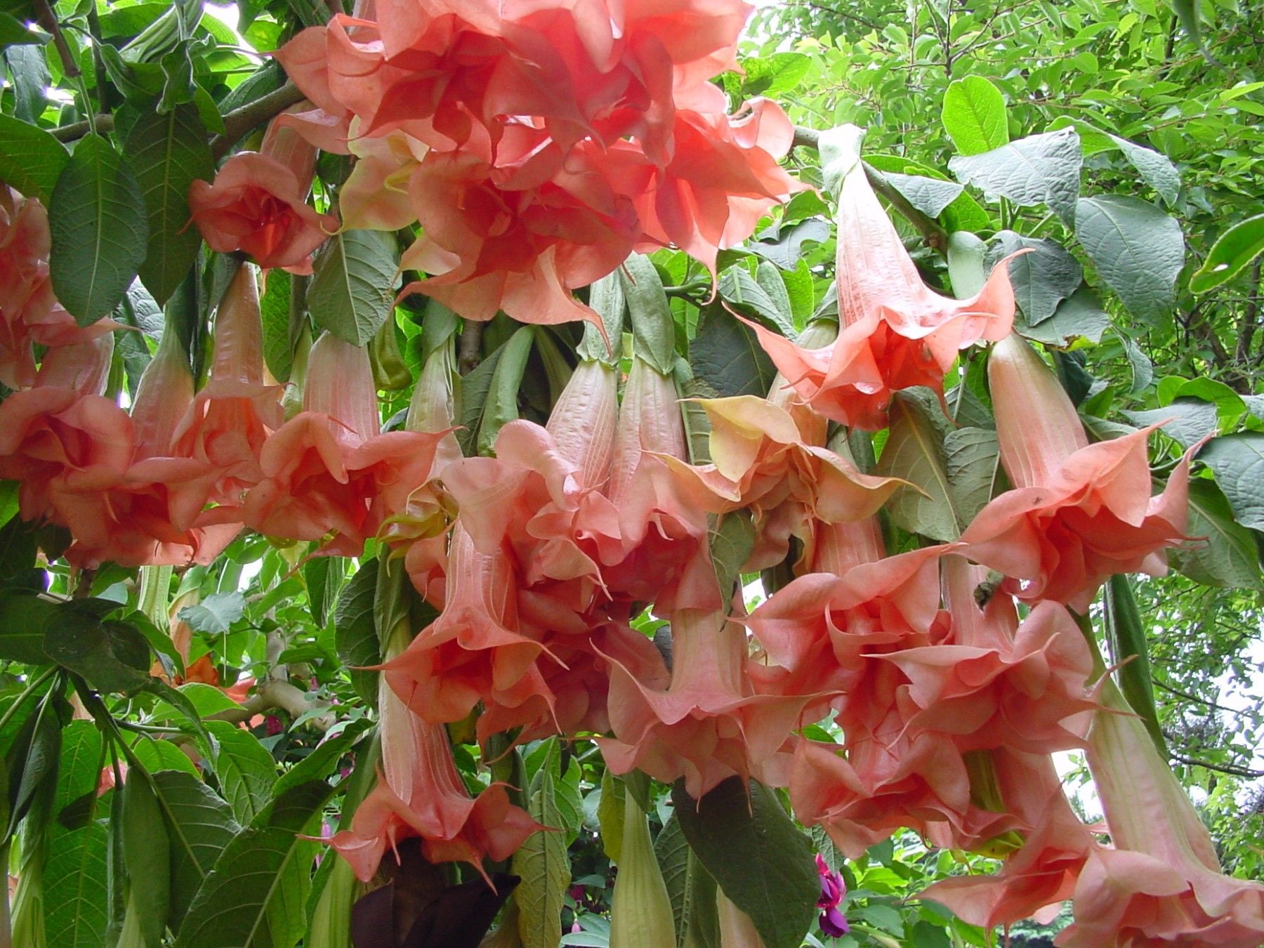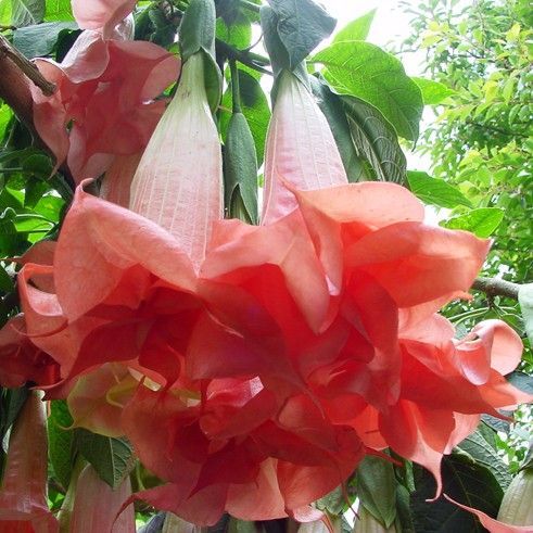 Engelstrompete "Phänomenal", mit dunkellachs bis rosafarbigen gefüllten großen Blüten