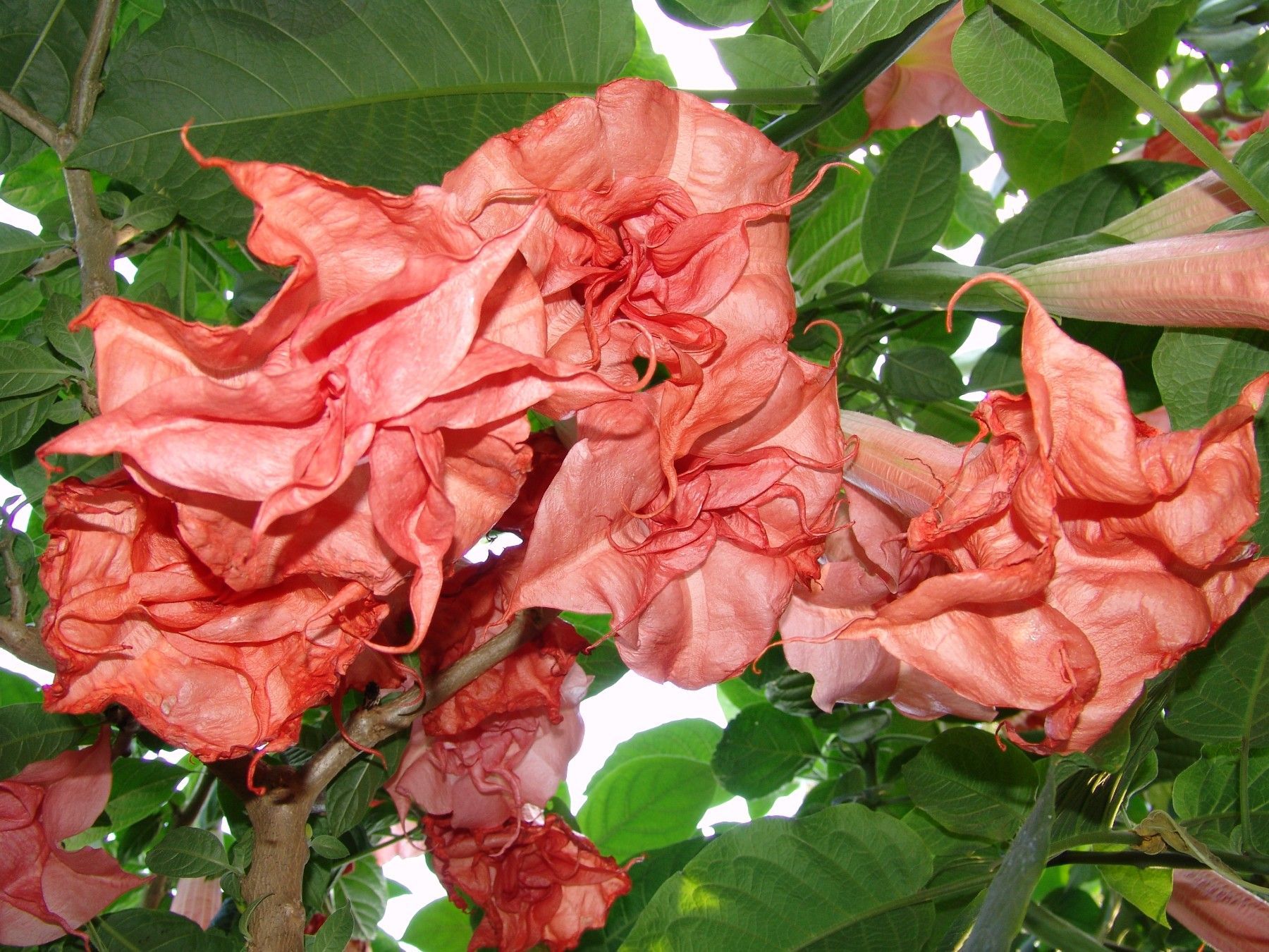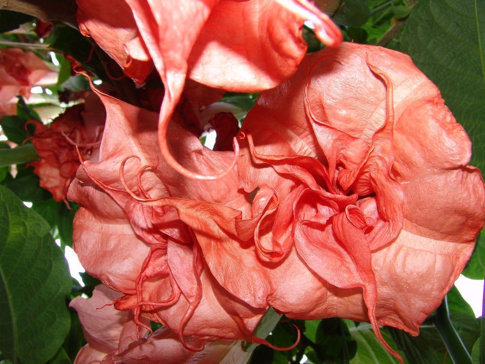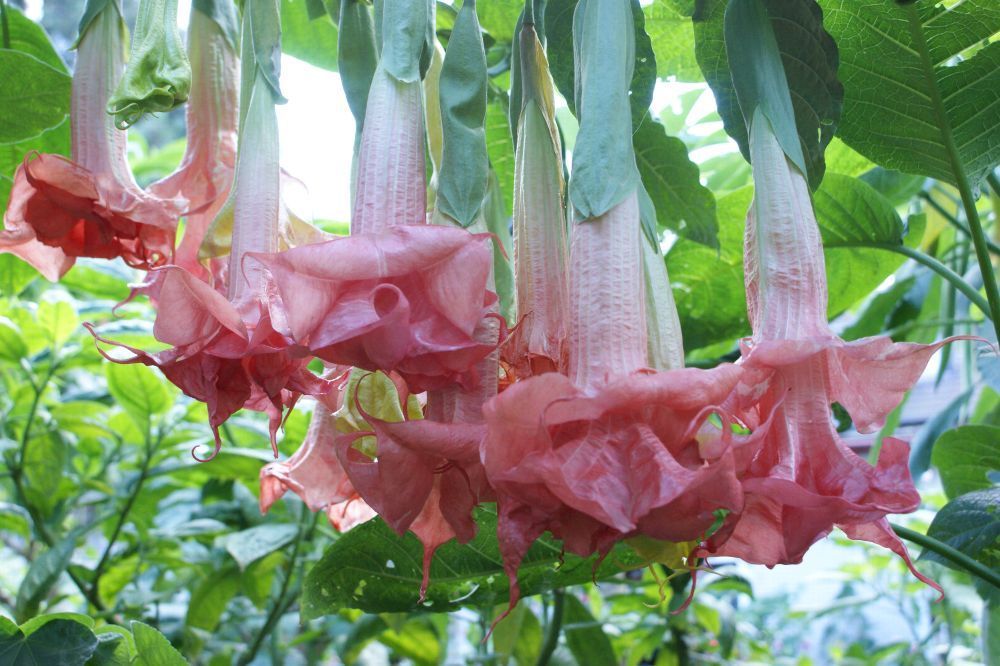 Engelstrompete "Pink Perfektion" bis zu dreifach gefüllte rosarote Blüten (Rose)