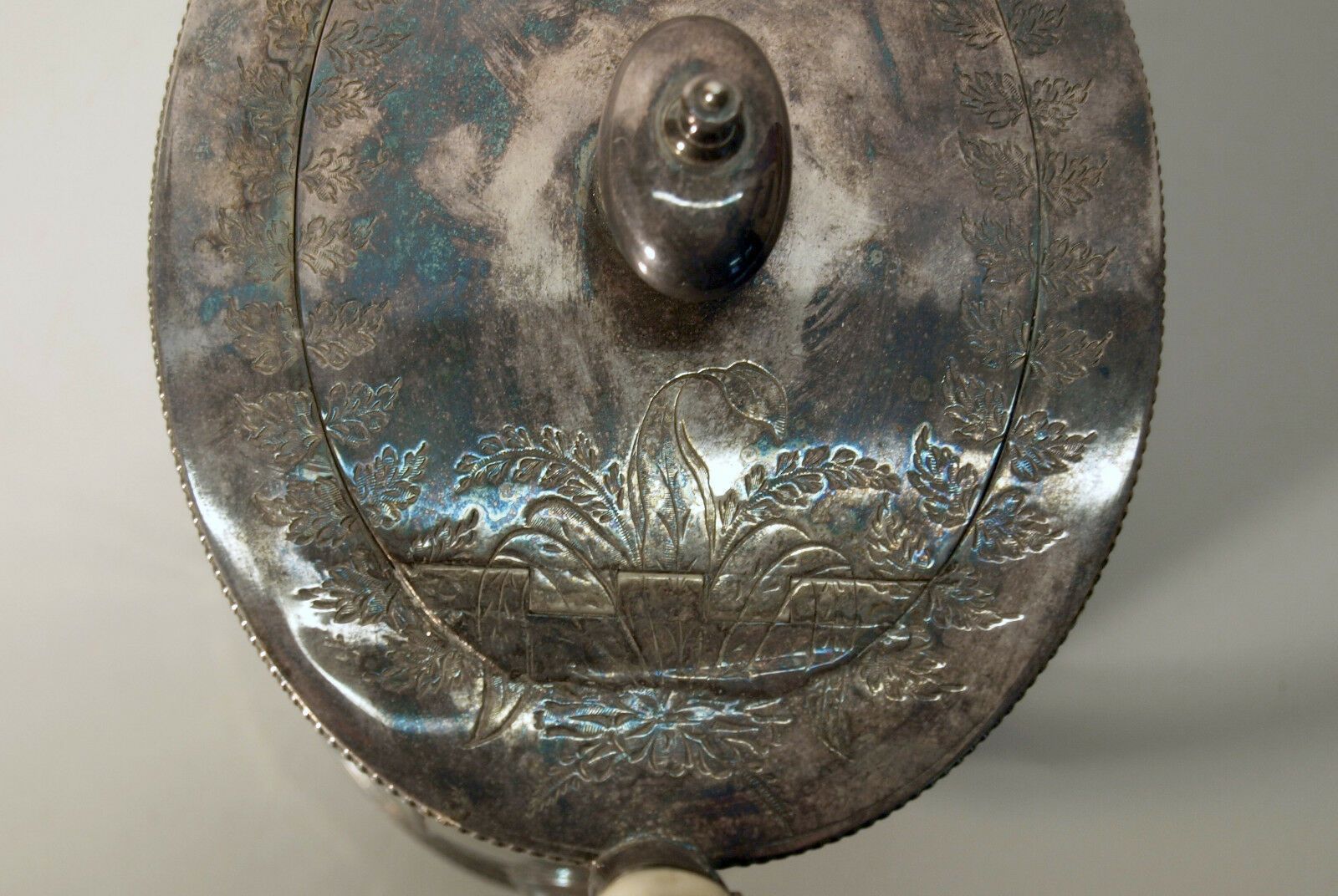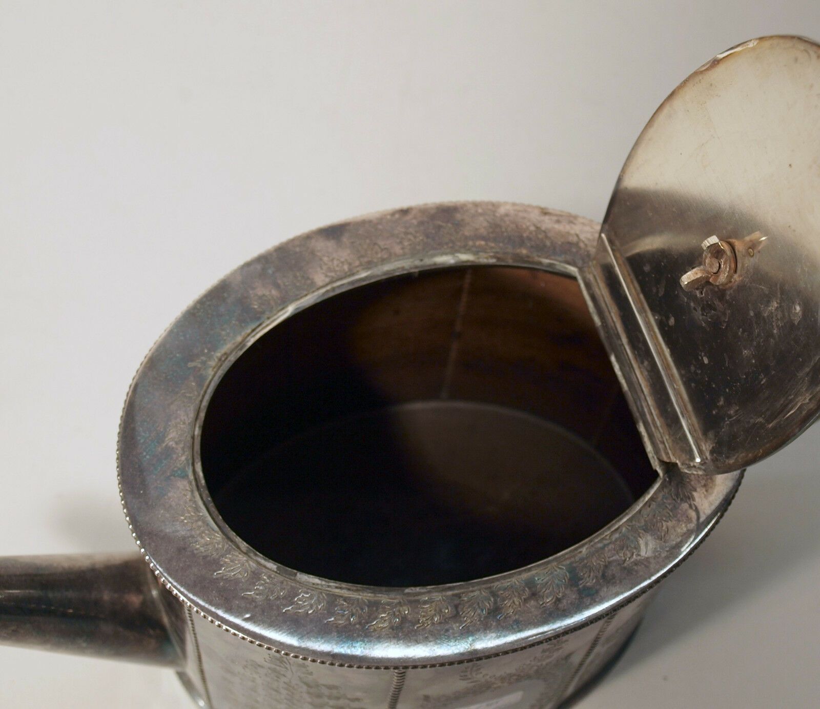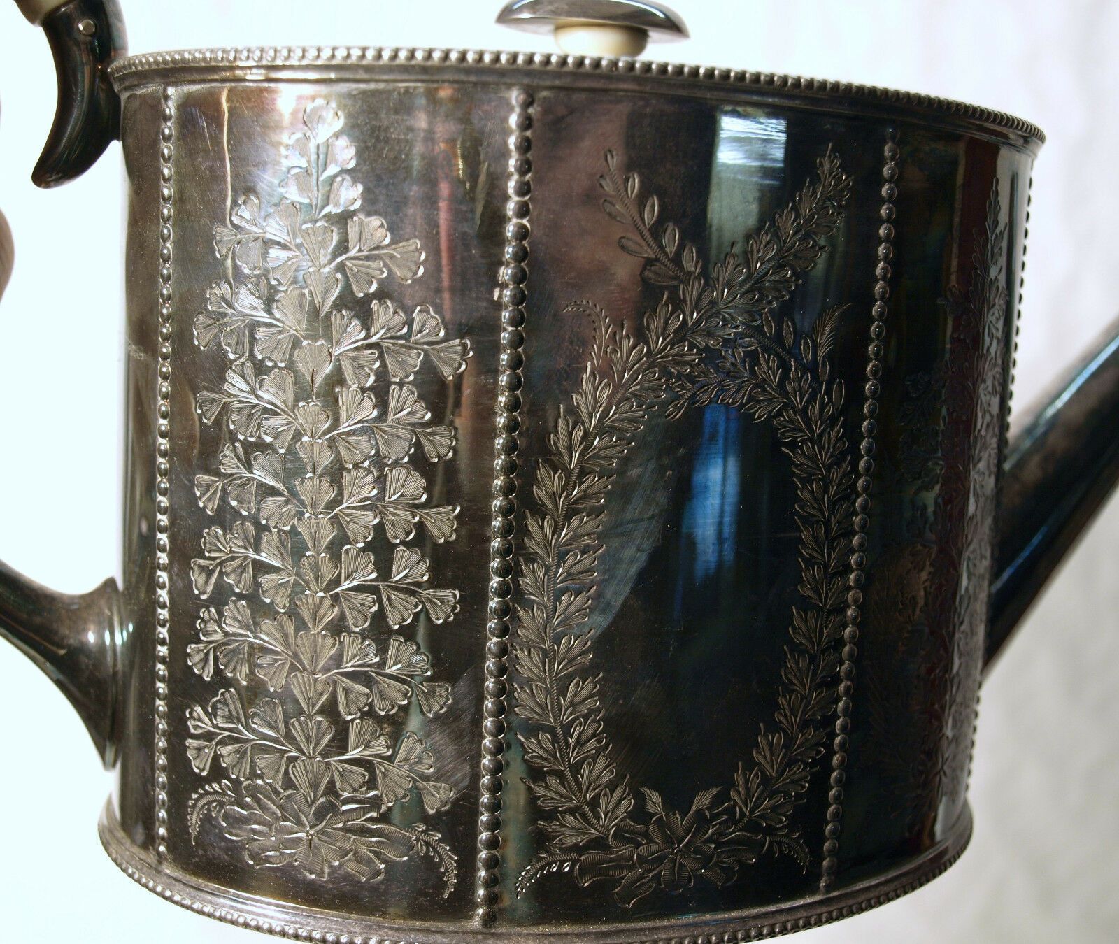 Englische Teekanne um 1920. Ohne Marke. Silver plated. Sehr gut erhalten, aber ungeputzt. Maße: L 28, H 15 cm. Antikes am Deich - Inh: Oliver Kipp-Trense G M T Sprache erkennen Afrikaans Albanisch Arabisch Armenisch Aserbaidschanisch Baskisch Bengalisch Bosnisch Bulgarisch Burmesisch Cebuano Chichew