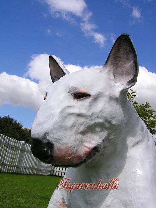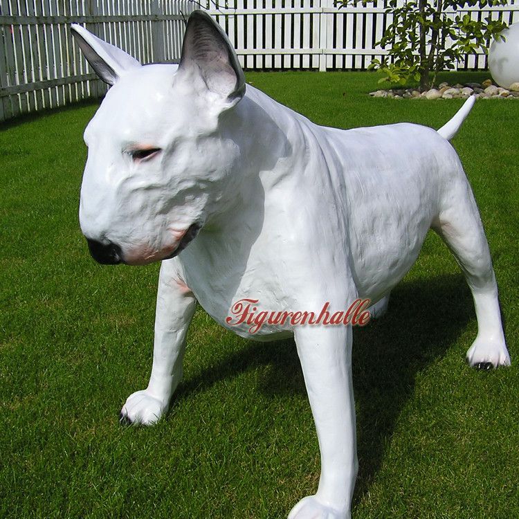 Englischer Bullterrier Figur Deko Statue Aufstellfigur Pit Bull weiß Fan Artikel