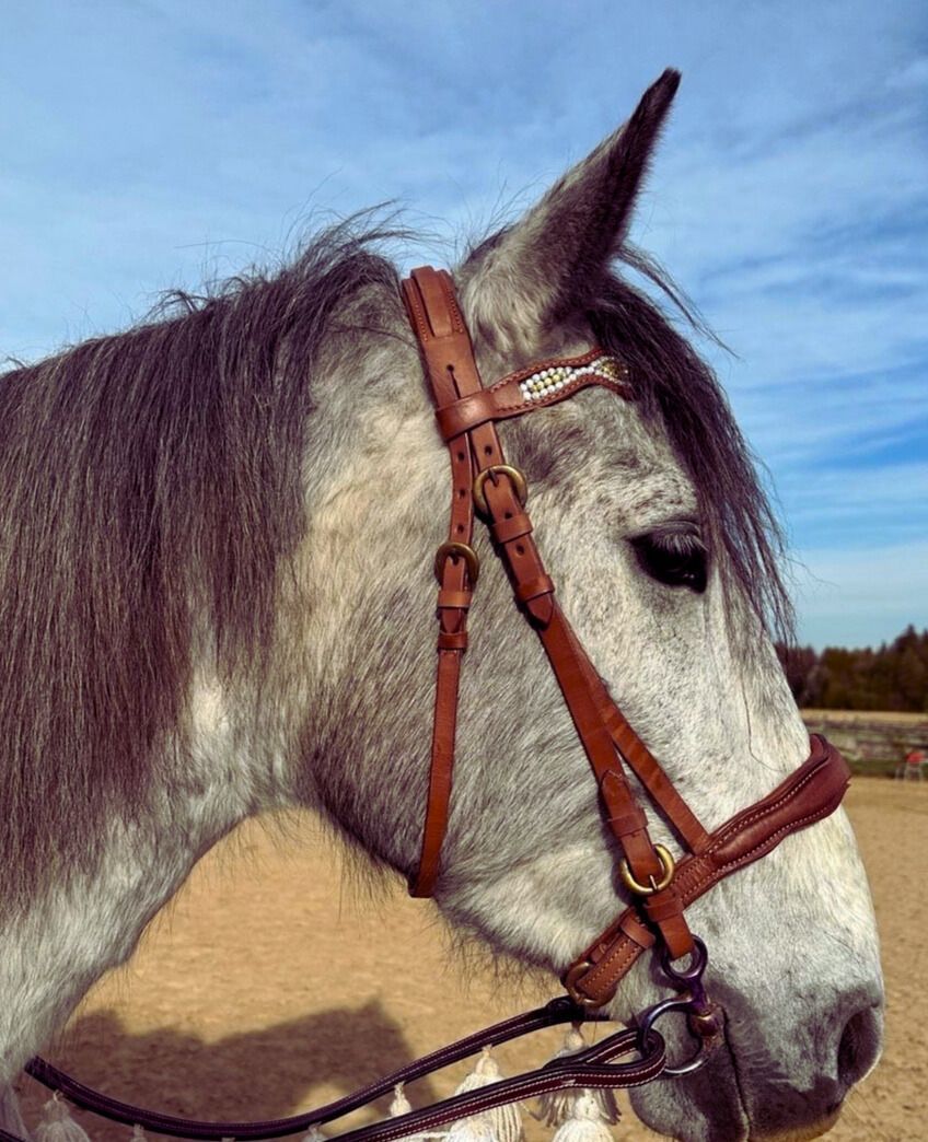 Englisches Reithalfter, sehr weich unterlegte Englischtrense in barockem Stil