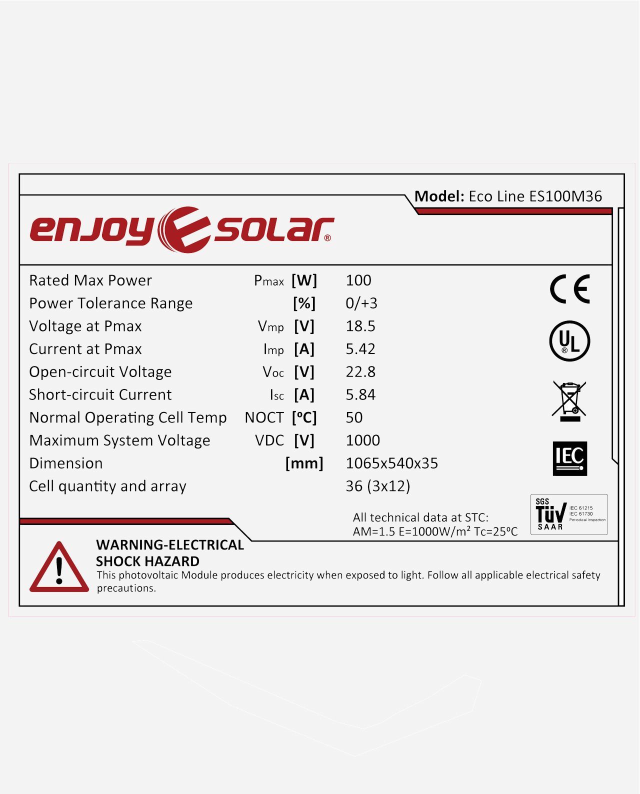 enjoy solar®PERC Monokristallines Solarmodul, 166mm x 166mm, 9Busbars, 100W 12V