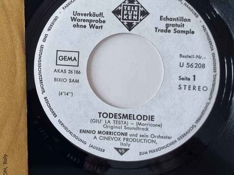 Ennio Morricone - Todesmelodie (Giu' la testa) 7'' Vinyl Germany PROMO