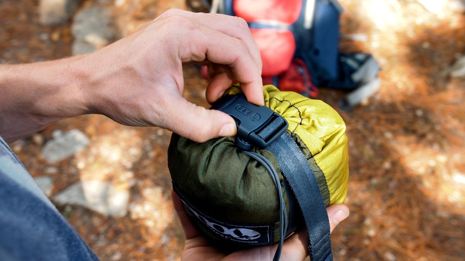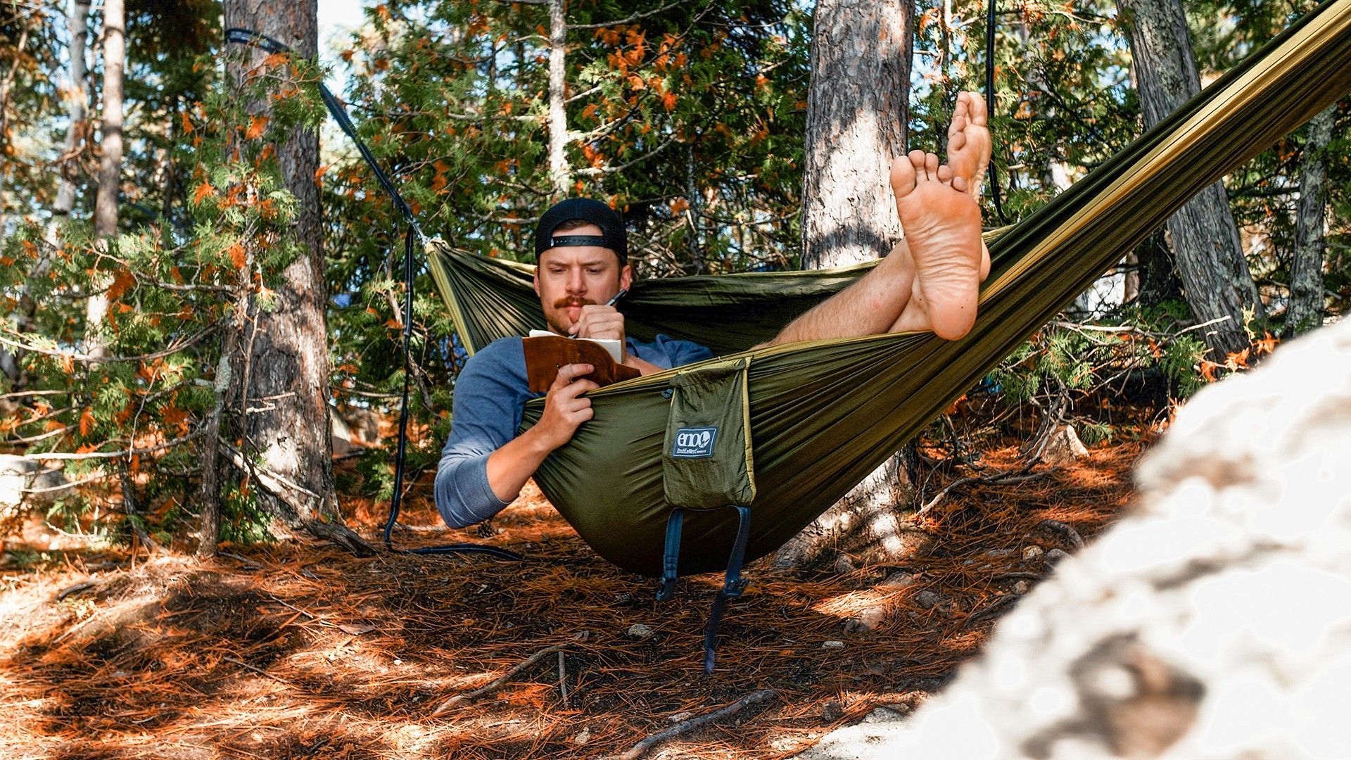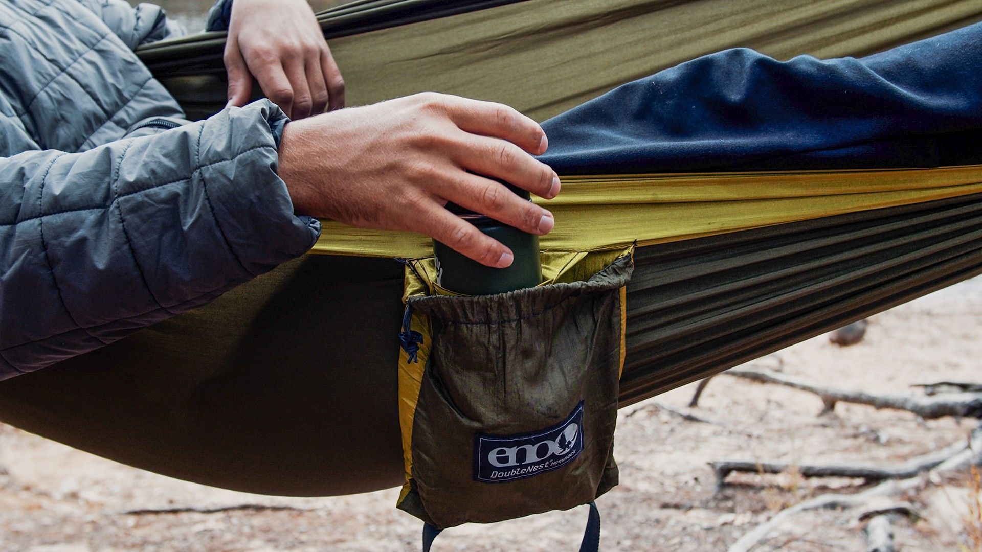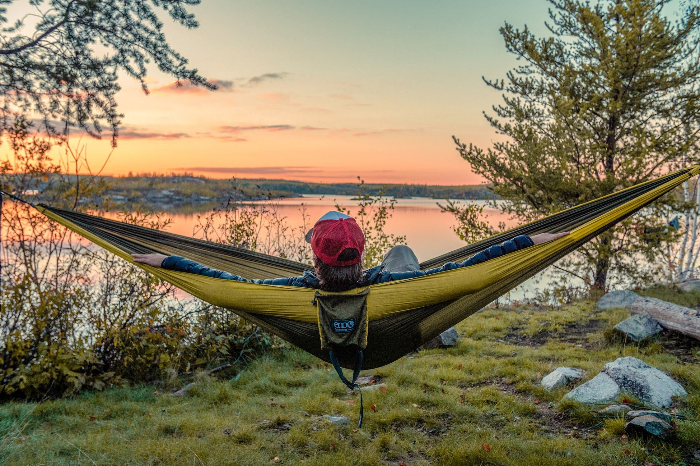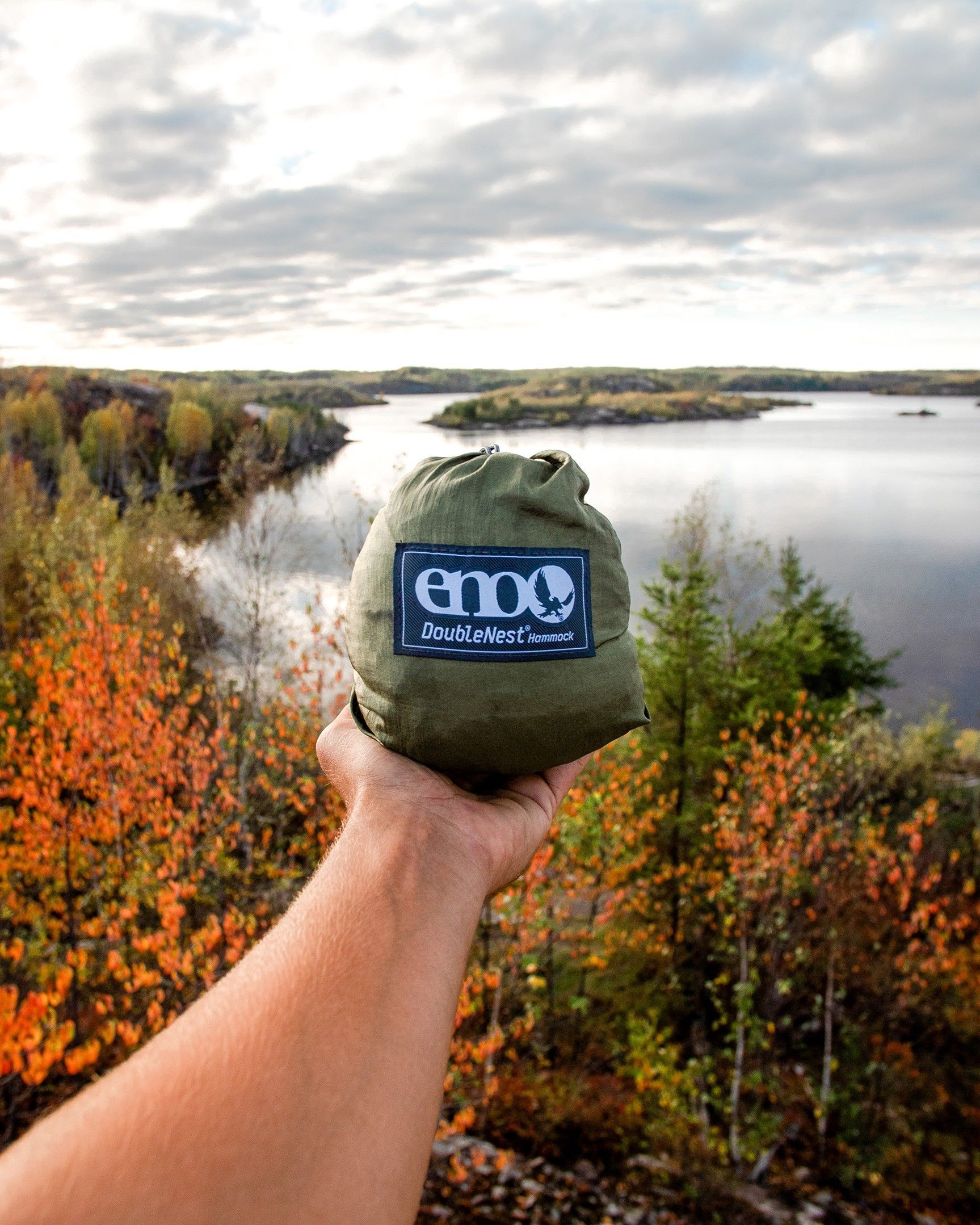 ENO DoubleNest Hängematte olivgrün mit Melon Rand Hängematte