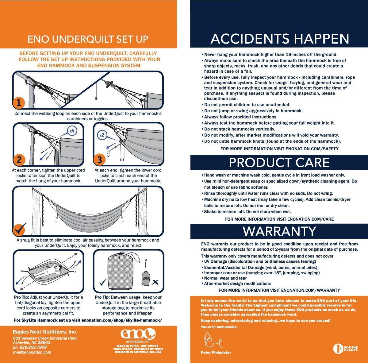 ENO Ember Underquilt - Hängematten Kälteschutz extra breit und kompakt Reise