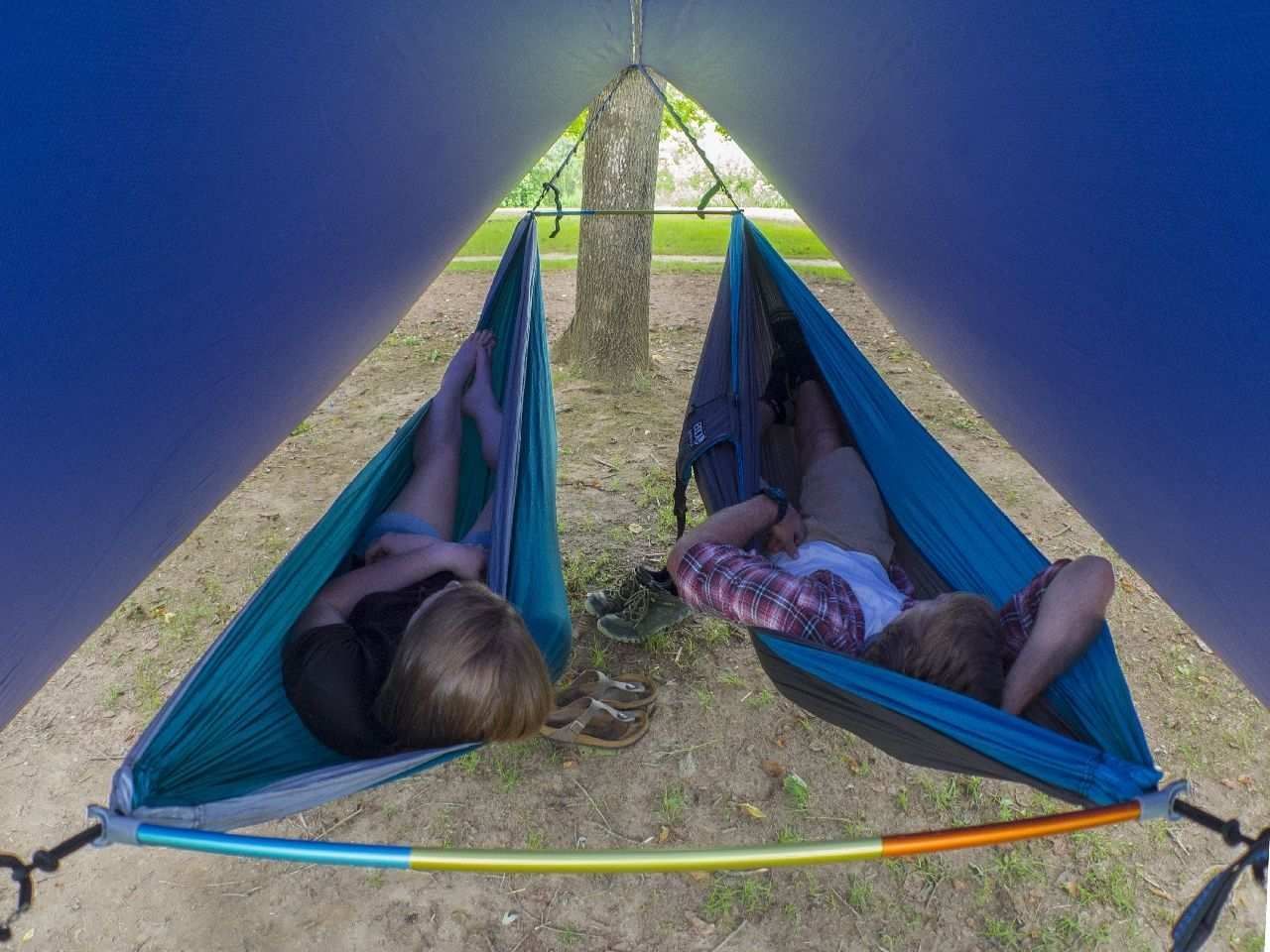 eno Fuse Tandem Retro Tri-Alu Spreizstab als Abstandhalter bei Hängemattenmontage Die superleichten Spreizstäbe von eagles nest outfitters dienen als Abstandshalter zwischen zwei Hängematten. So können Sie beide Hängematten an denselben beiden Bäumen montieren ohne dabei aneinander zu geraten. Die e