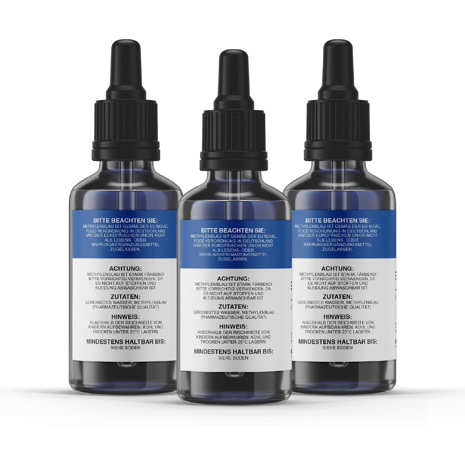 Methylblue lichtgeschützt in einer Braunglasflasche mit Pipette – 300ml Methylen