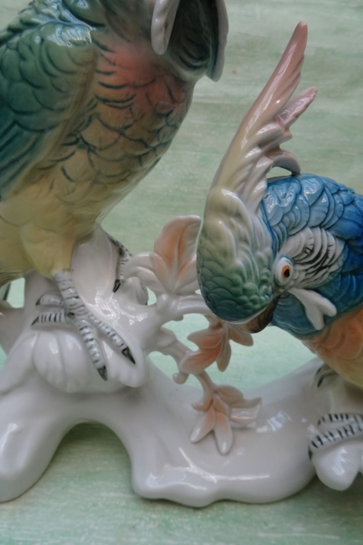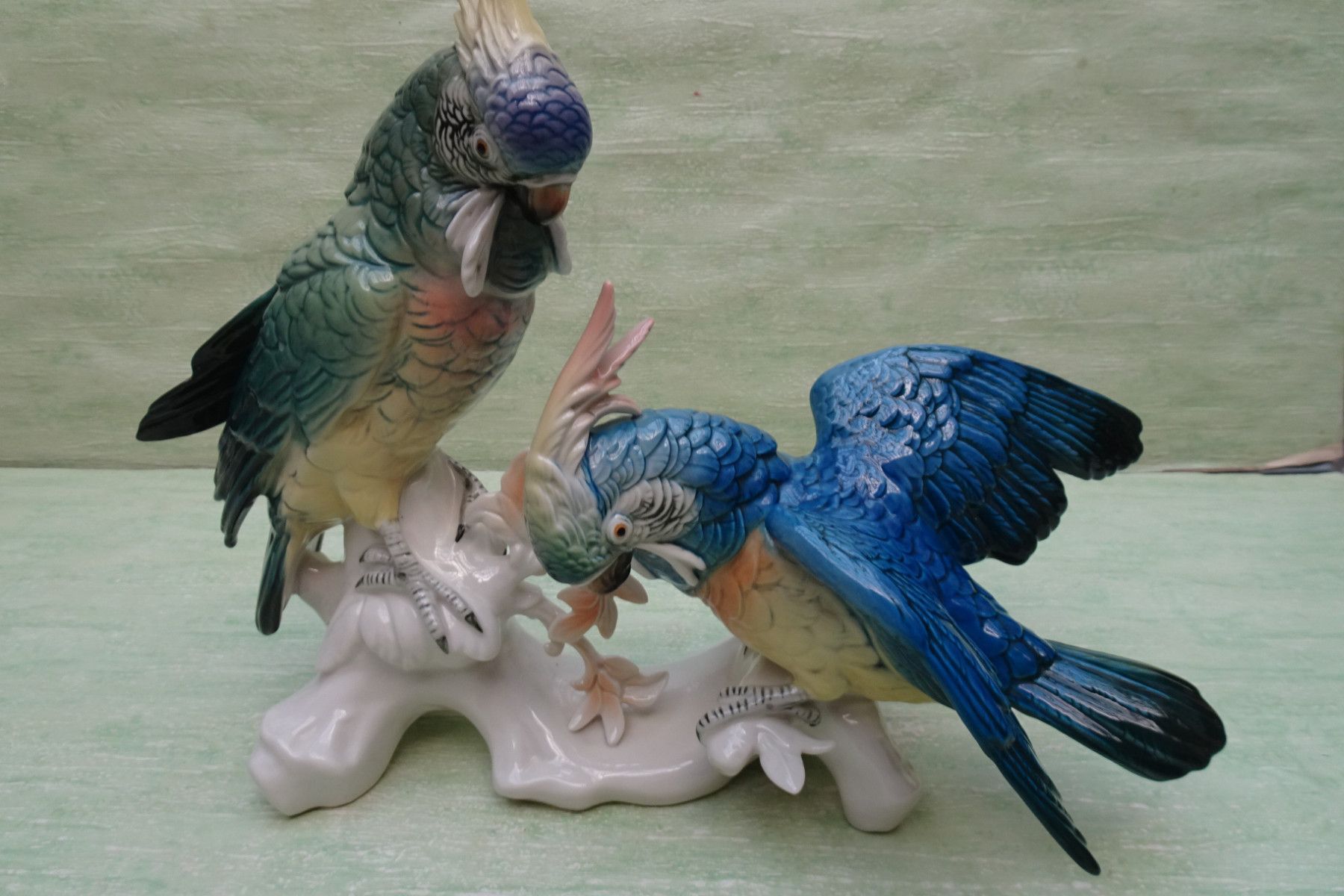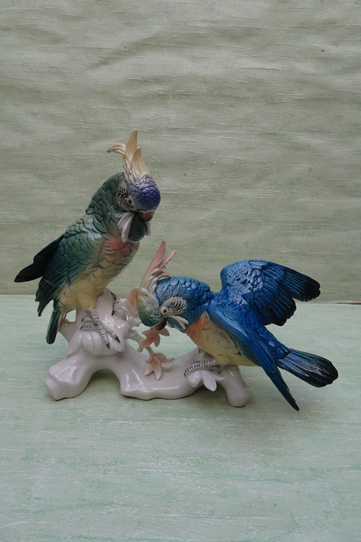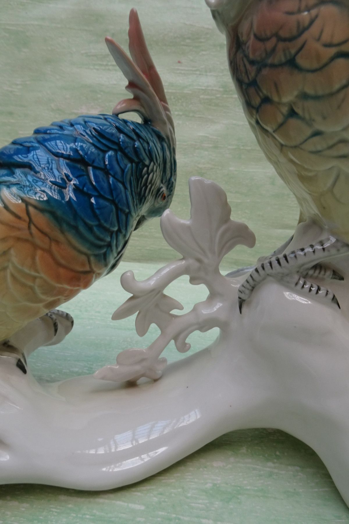 Ens "blau volkstedt Thüringen nr 7336 Papagei Kakadu Paar ca 27x35cm