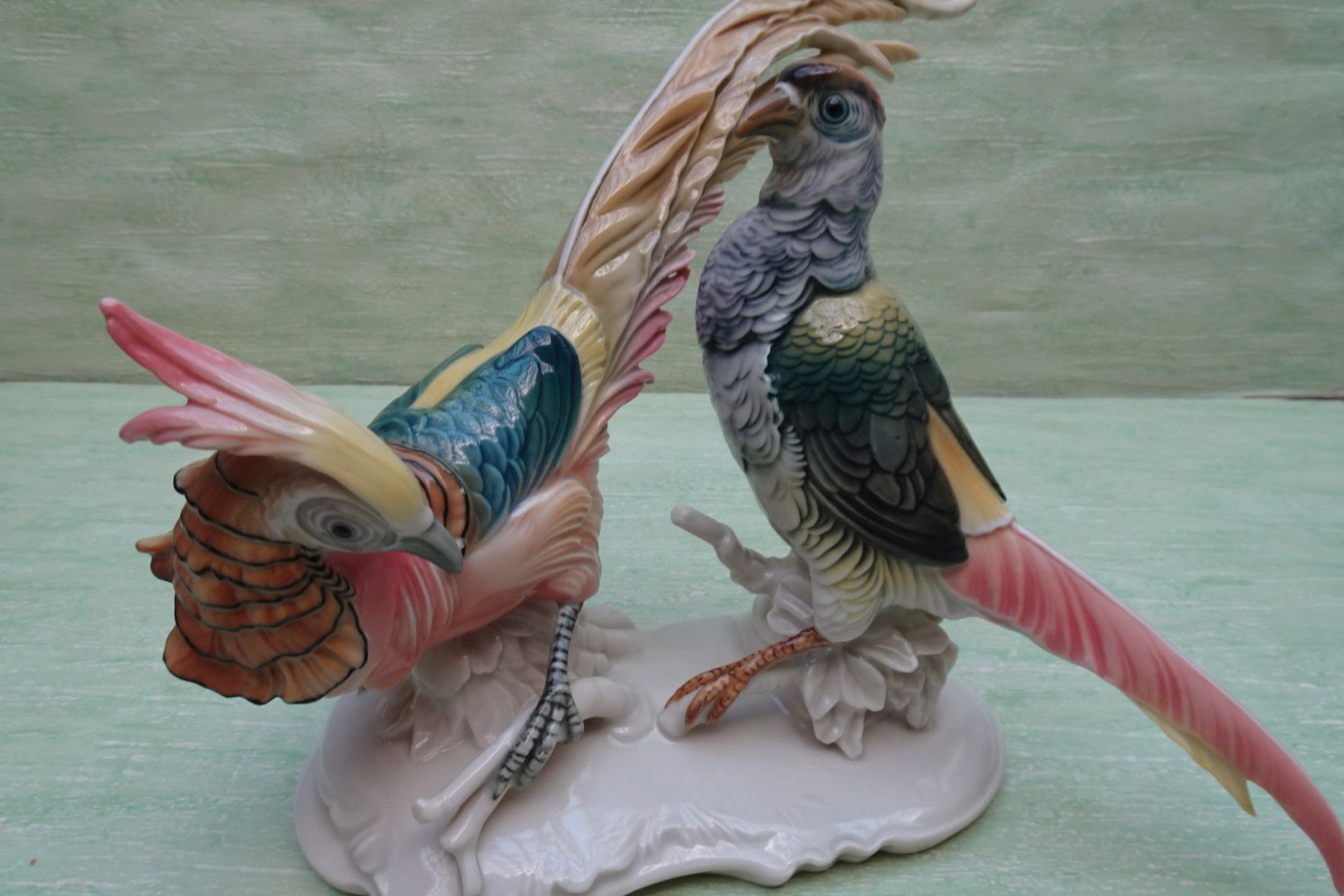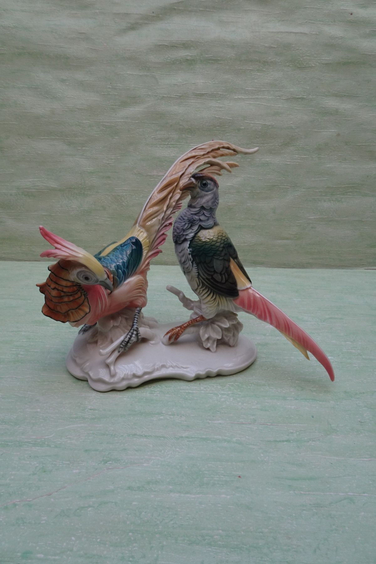 Ens "grün Volkstedt Thüringen Fasanenpaar Vogel Vögel ca 20 x 26 cm