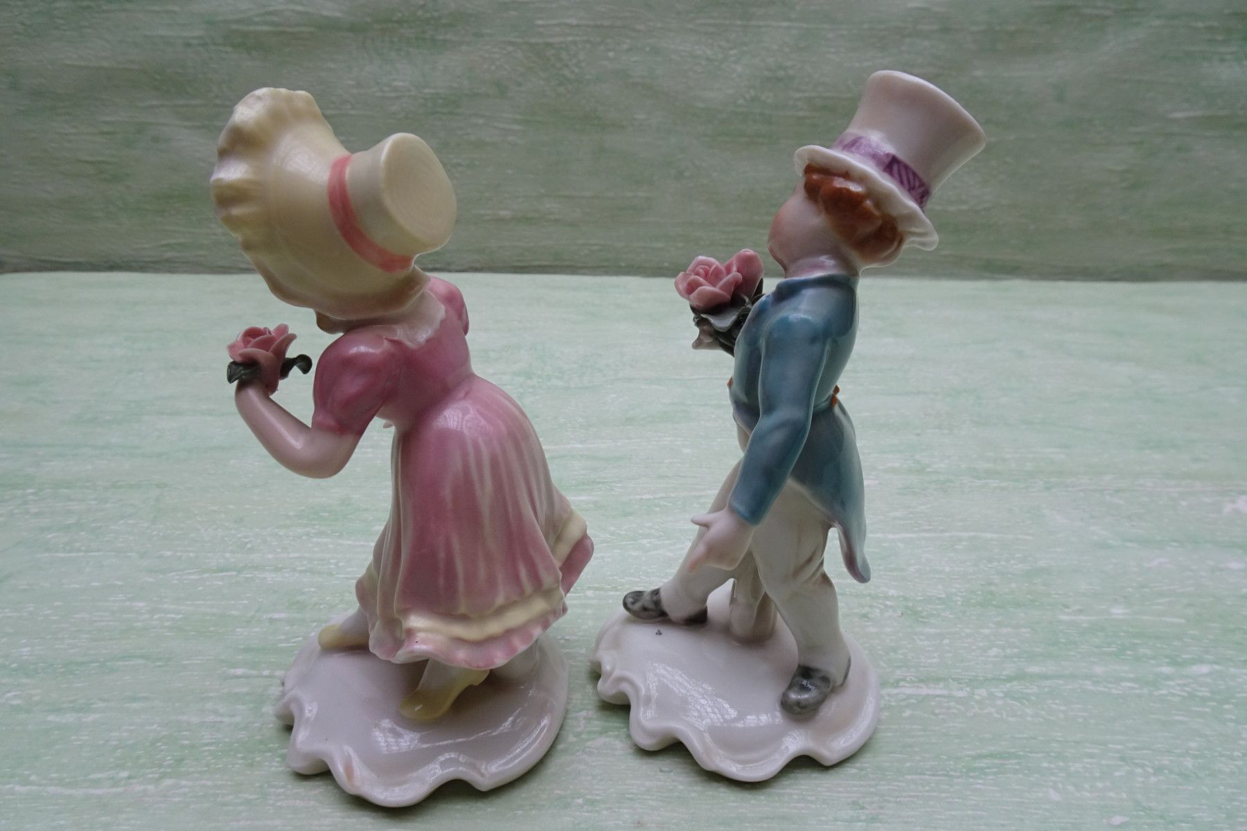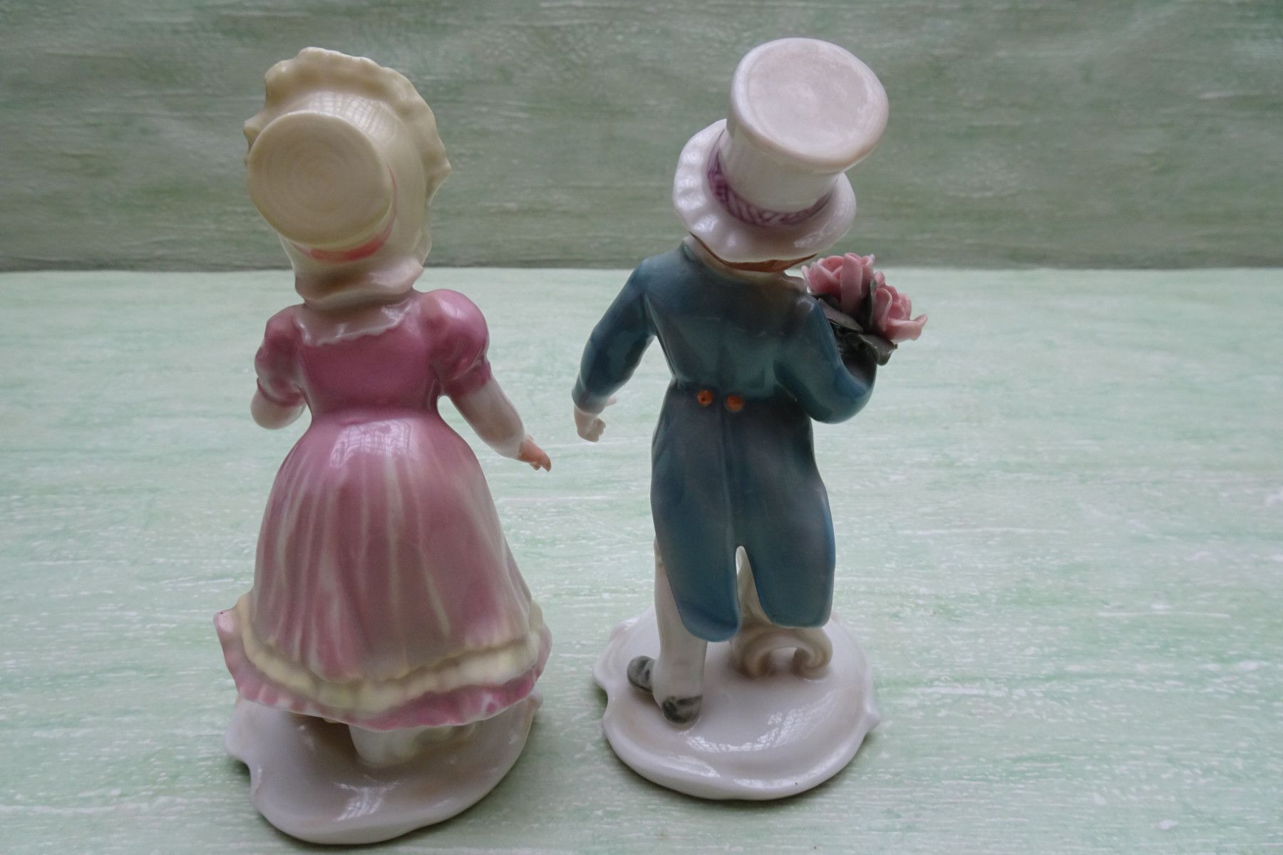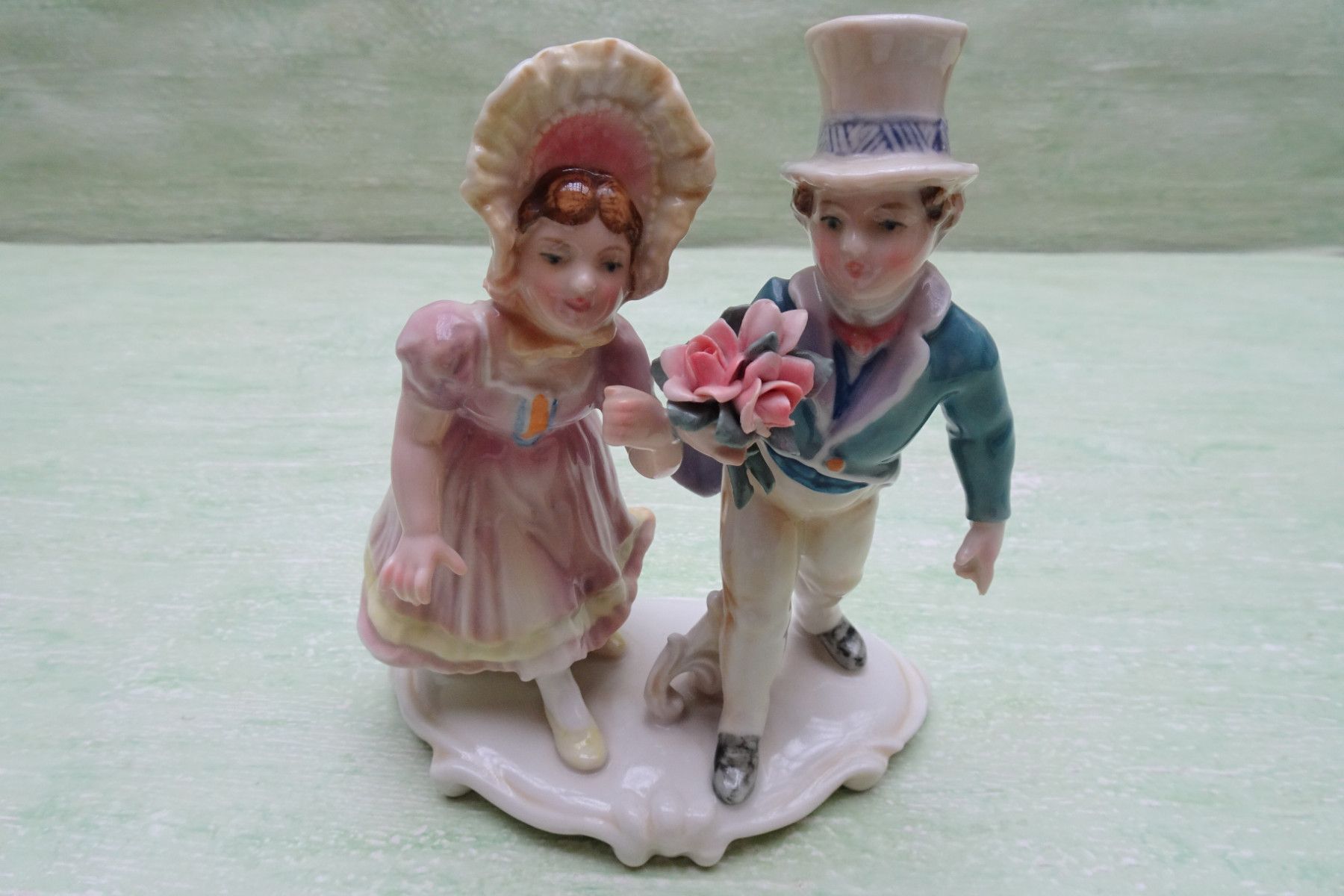 Ens Volkstedt Thüringen "grün Rosenkavalier Gratulanten Mann Frau Paar ca 14 cm