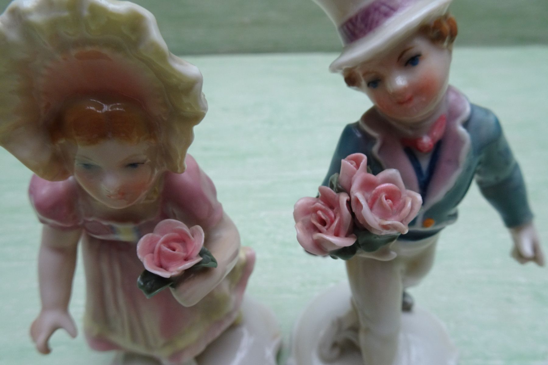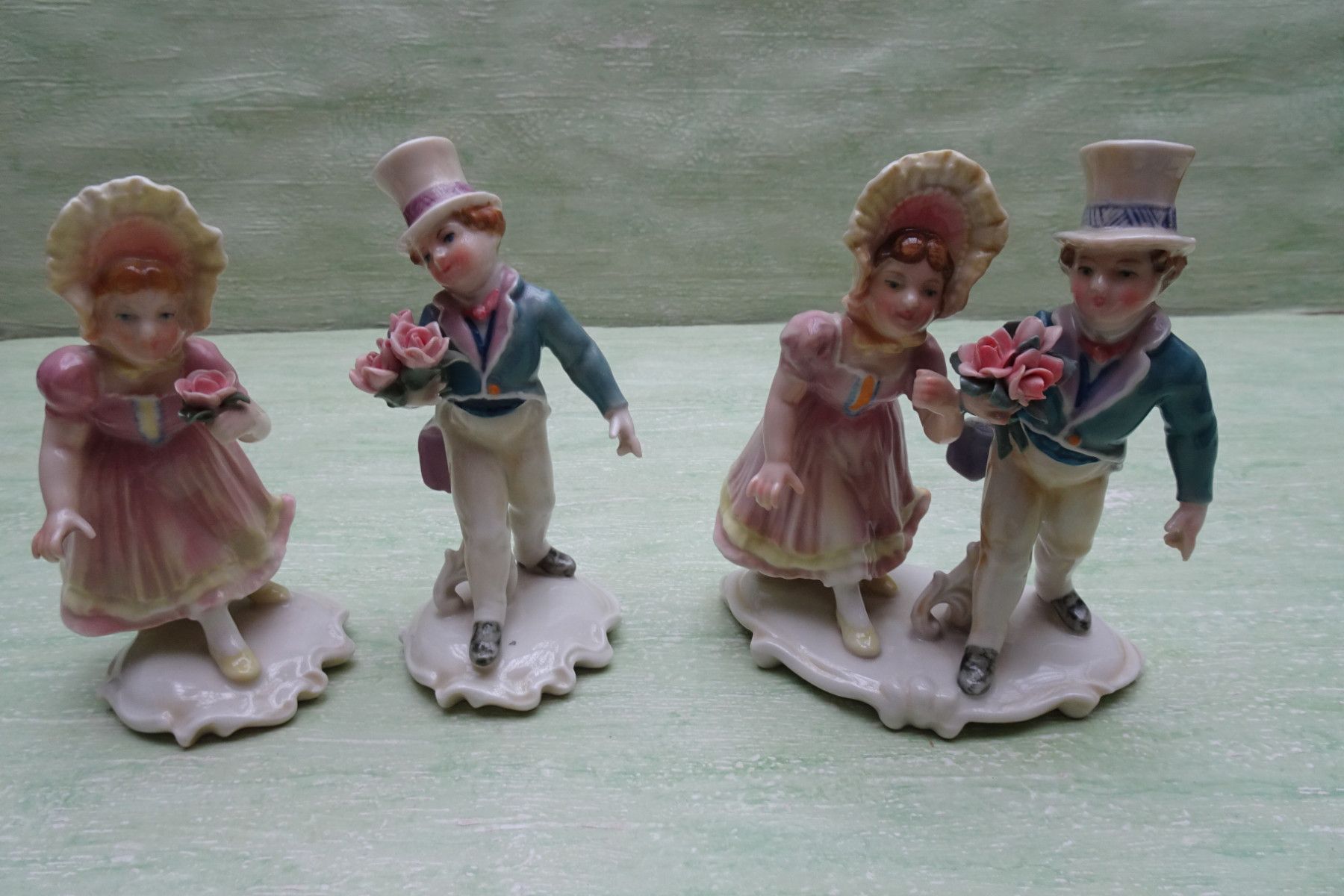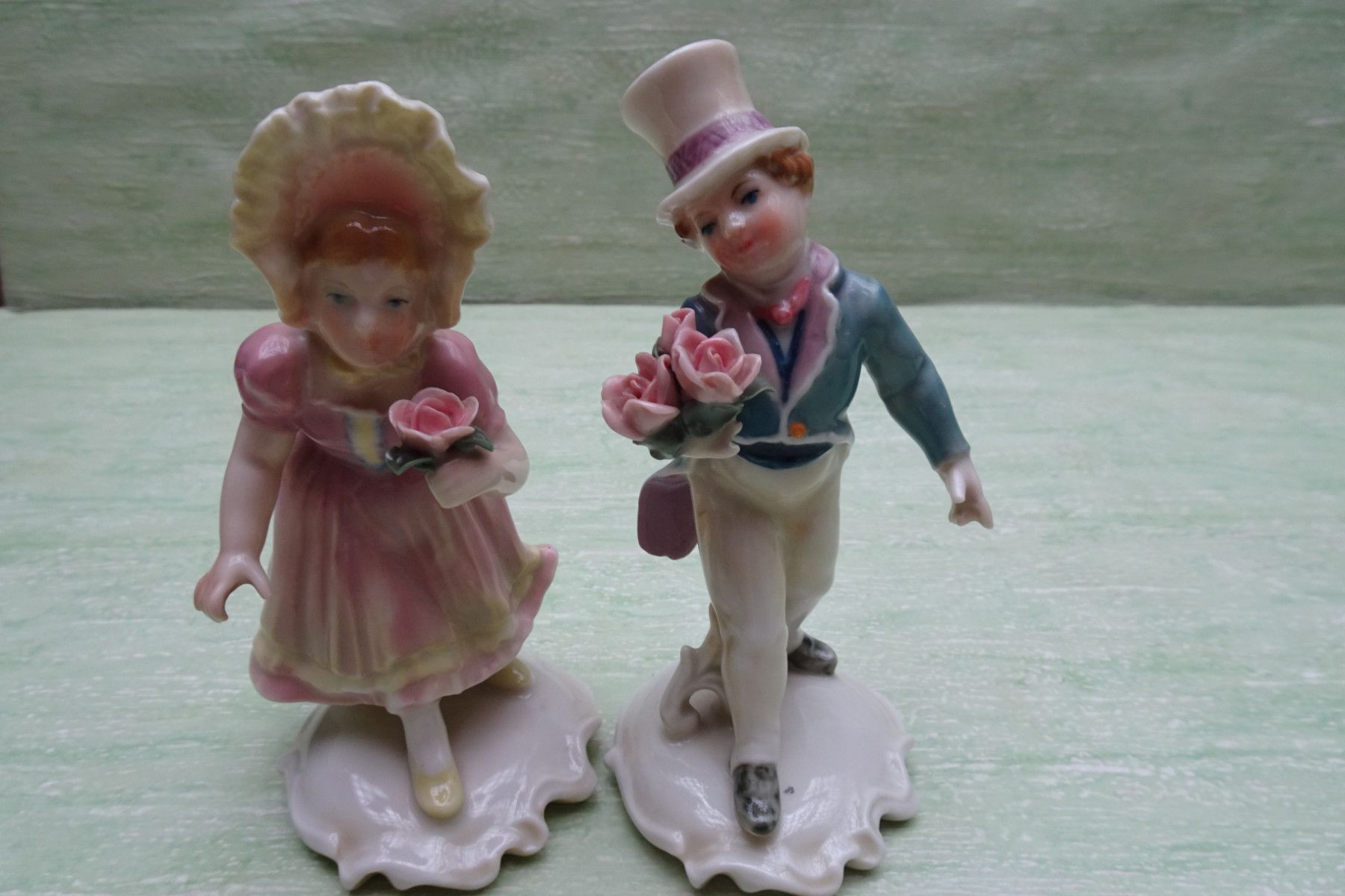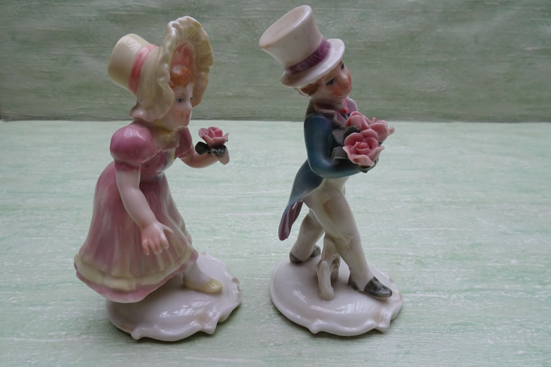 Ens Volkstedt Thüringen "grün Rosenkavalier Gratulanten Mann Frau Paar ca 14 cm